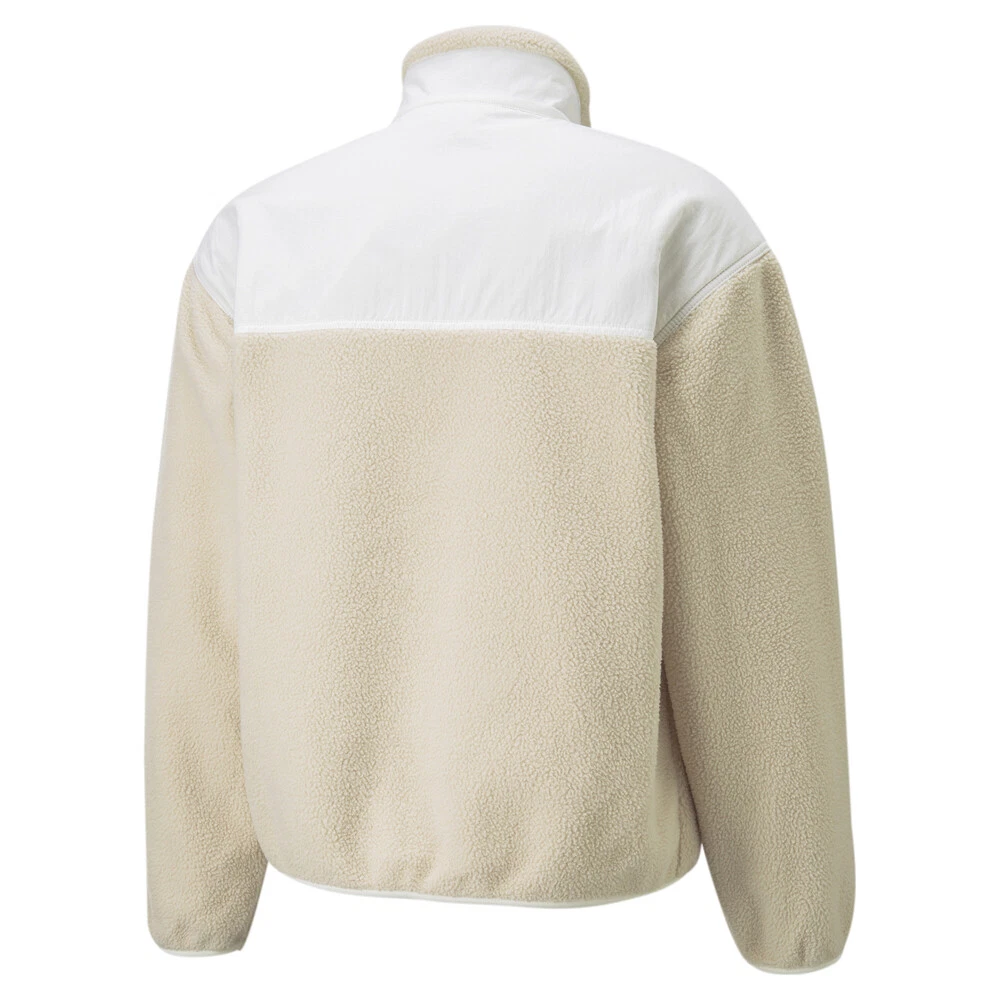 AMI X Sherpa Full Zip Jacket Product Details Regular fit Full zip Insulated 100% polyester This sherpa jacket from the second season of PUMA x AMI is guided by the creative vision of the Parisian label, finding the balance between relaxed and refined, amiable and edgy, streetwear and sportswear – just like every item from season one. Additional Details Color: Beige Occasion: Casual Gender: Mens Age: Adult Brand: Puma
