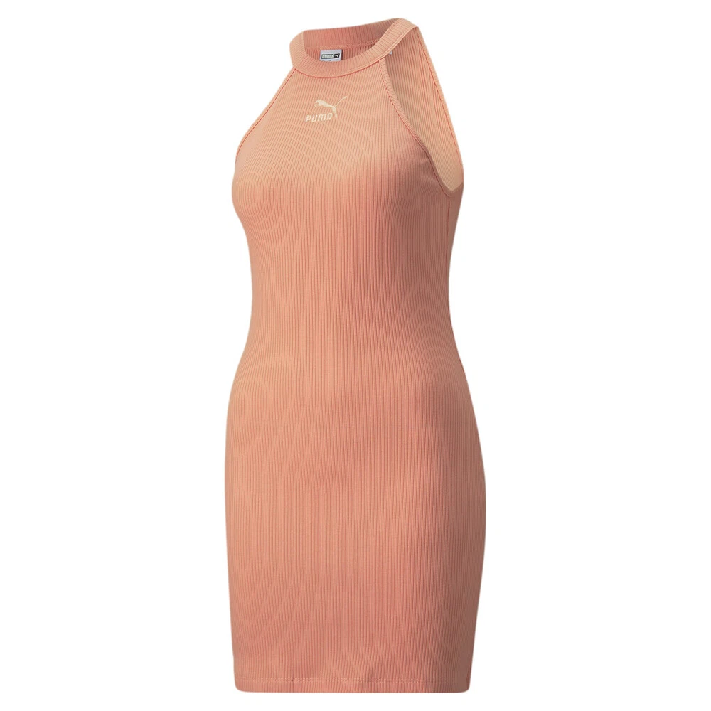 Classics Ribbed Sleeveless T-Shirt Dress Product Details Slim fit Crew neck Sleeveless 56% Cotton, 41% Polyester, 3% Elastane An elevated wardrobe staple, the PUMA Classics Ribbed Sleeveless Dress provides you with an easy outfit that is here to help you handle the warmer weather in style. Additional Details Color: Pink Occasion: Casual Gender: Womens Age: Adult Brand:
