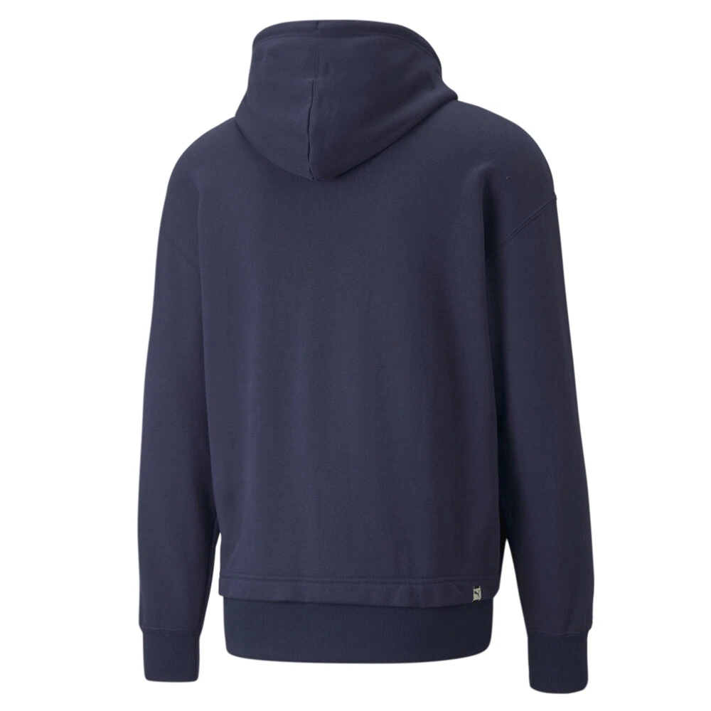 Downtown Graphic French Terry Pullover Hoodie Product Details A relaxed fit for a laid-back look from head to toe Functional kangaroo pocket with space for small items Ribbed cuffs and hem for a masculine silhouette 70% cotton , 30% cotton Recycled Easy to style and easier to wear: this Downtown Hoodie is an eclectic take on a comfort classic, with an eye-catching print graphic panel that adds a touch of unpredictability to any outfit. A kangaroo pocket, hood with adjustable drawstring, and ribbed cuffs and hem complete the look. Additional Details Color: Blue Occasion: Casual Gender: Mens Age: Adult Brand: Puma