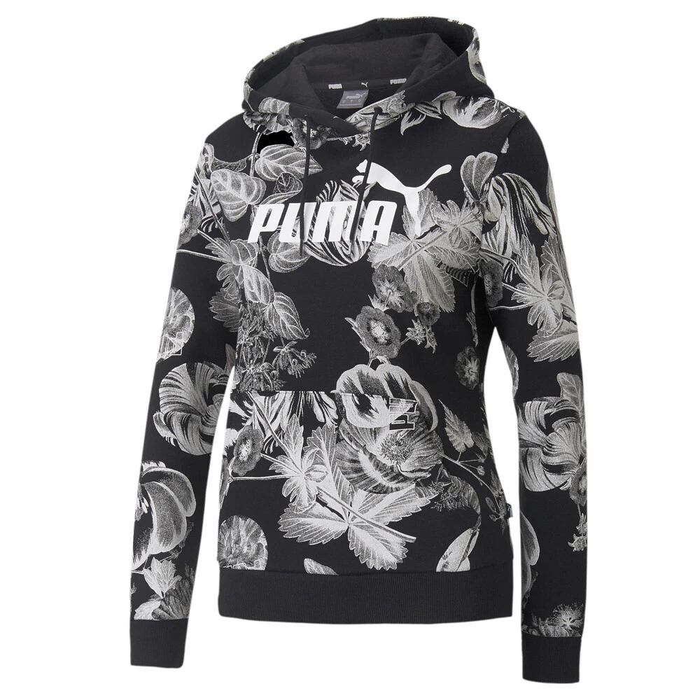 Ess+ Frozen Flower Long Sleeve Hoodie Product Details Jersey-lined hood with elastic drawcord Kangaroo pocket Regular fit 68% Cotton, 32% Polyester This eye-catching hoodie from the FROZEN FLOWER collection features a bold and beautiful floral print designed to keep you feeling cosy and looking cool when the weather outside is feeling the chill. A magnificent display of pure petal power. Additional Details Color: Black Occasion: Casual Gender: Womens Age: Adult Brand: Puma