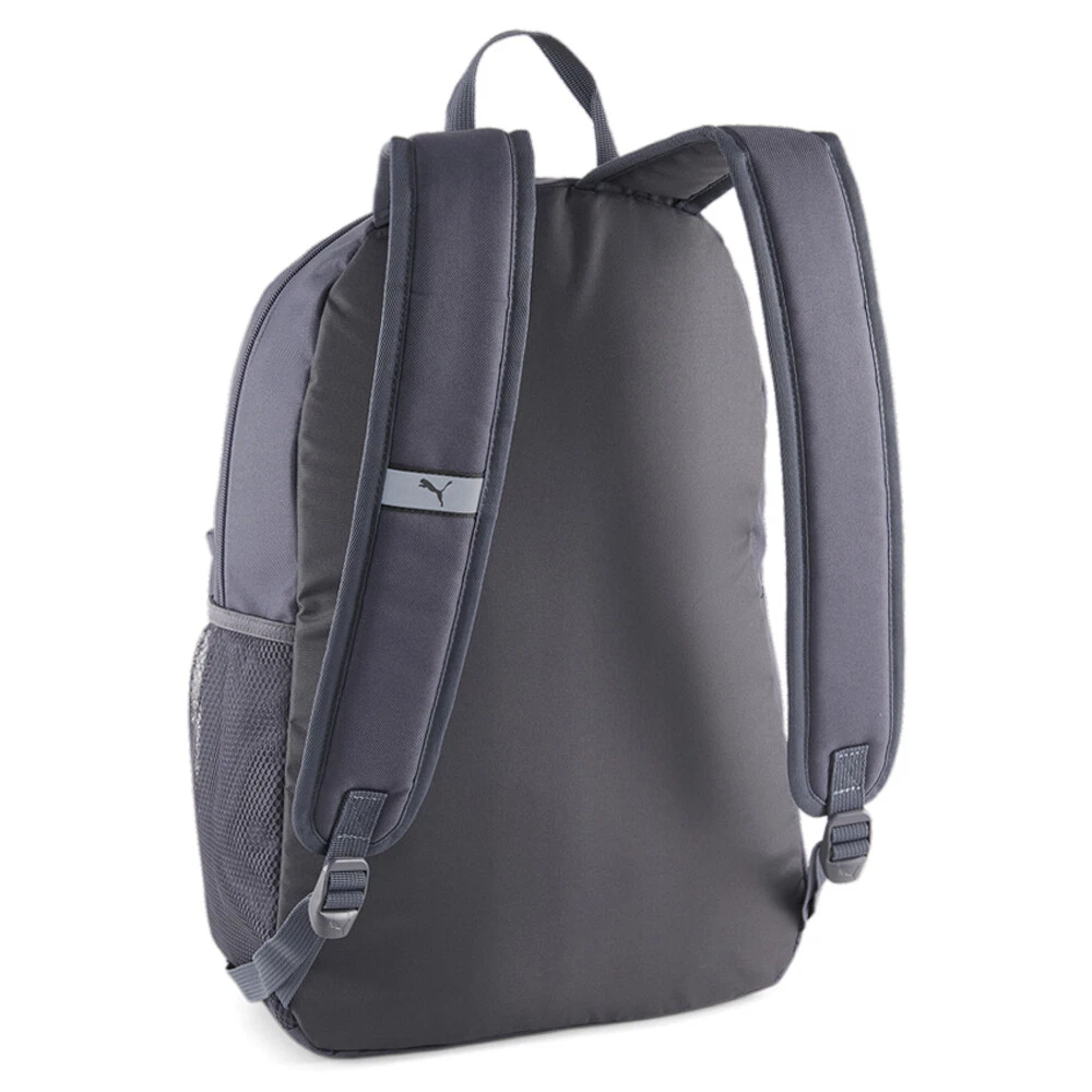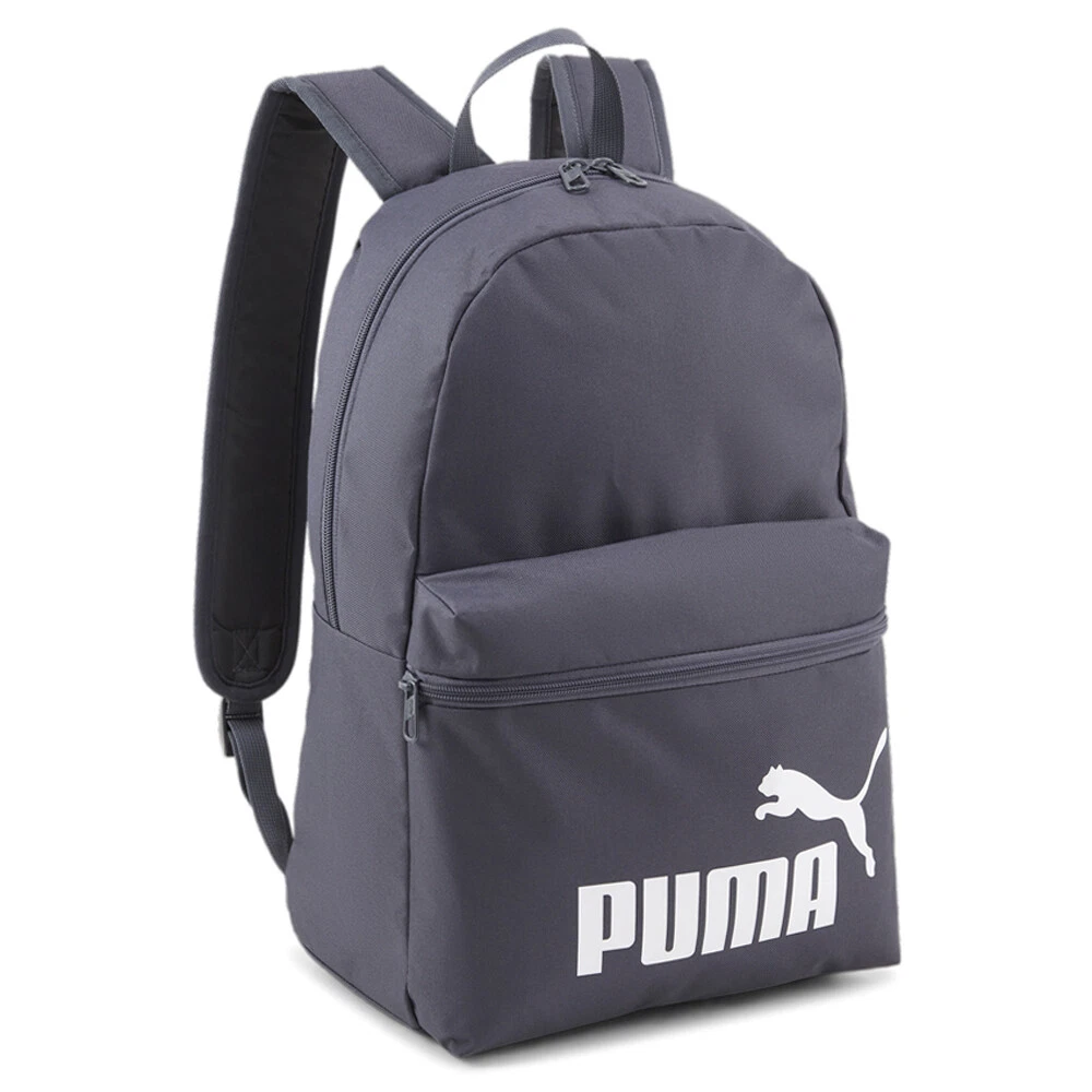 Phase Backpack Product Details Two-way zip opening into main compartment Zip opening into the front pocket Mesh pocket on side Adjustable, padded shoulder straps Webbing carry handle The PUMA Phase backpack's classic silhouette and statement branding make for a long-standing fave. This easy-to-wear look stands the test of time. Additional Details Color: Grey Occasion: Gender: Mens Age: Adult Brand: