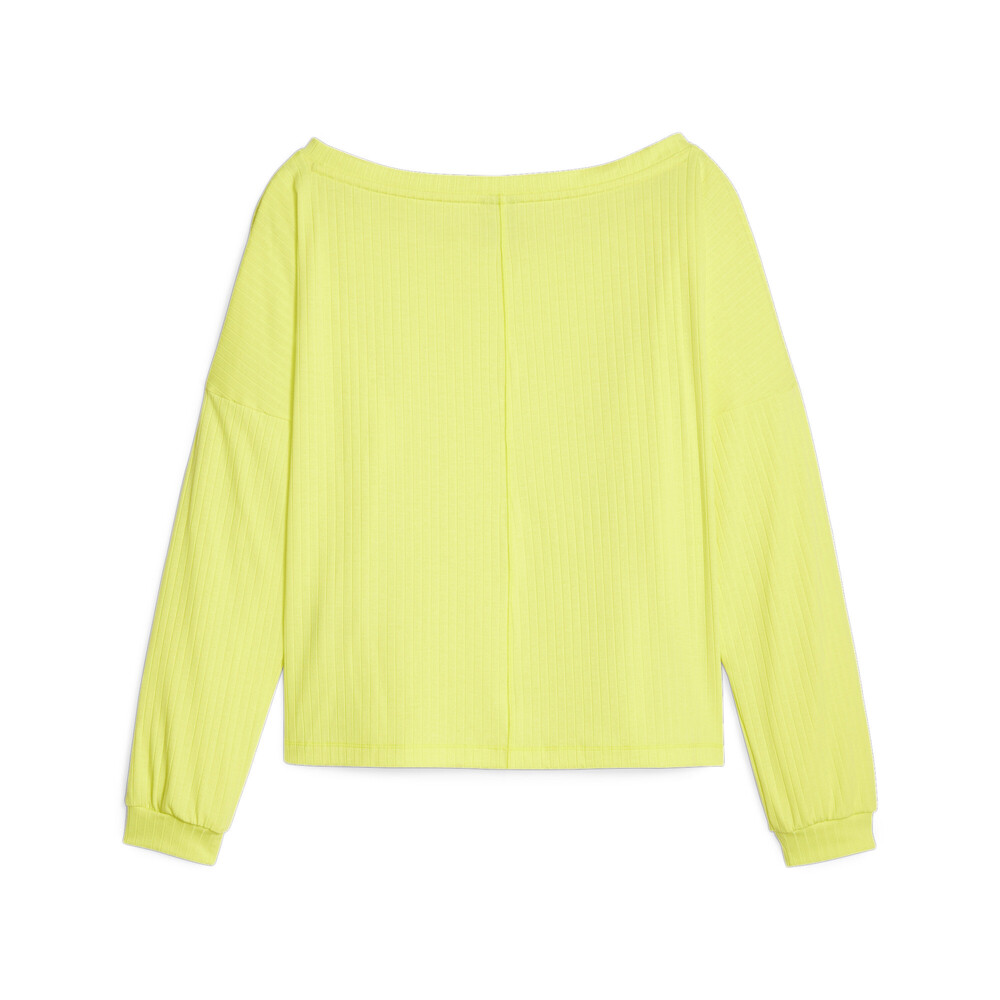 Studio Unwind Scoop Neck Long Sleeve Athletic T-Shirt Product Details Oversized fit Puma Align Graphic on sleeve Long sleeves Modal and recycled fiber blends that are soft, comfortable, and keep you dry 77% polyester 19% Modal 4% elastane Unwind and recover after a long workout in the STUDIO UNWIND long sleeve tee. This relaxed-fit women's shirt features moisture-wicking technology that keeps you dry, even if you're not quite done sweating. Additional Details Color: Yellow Occasion: Casual Gender: Womens Age: Adult Brand: Puma
