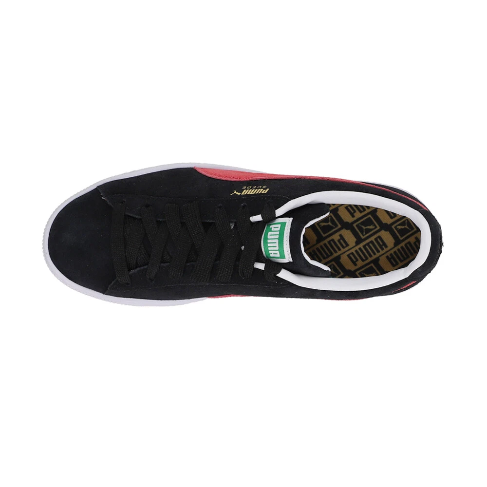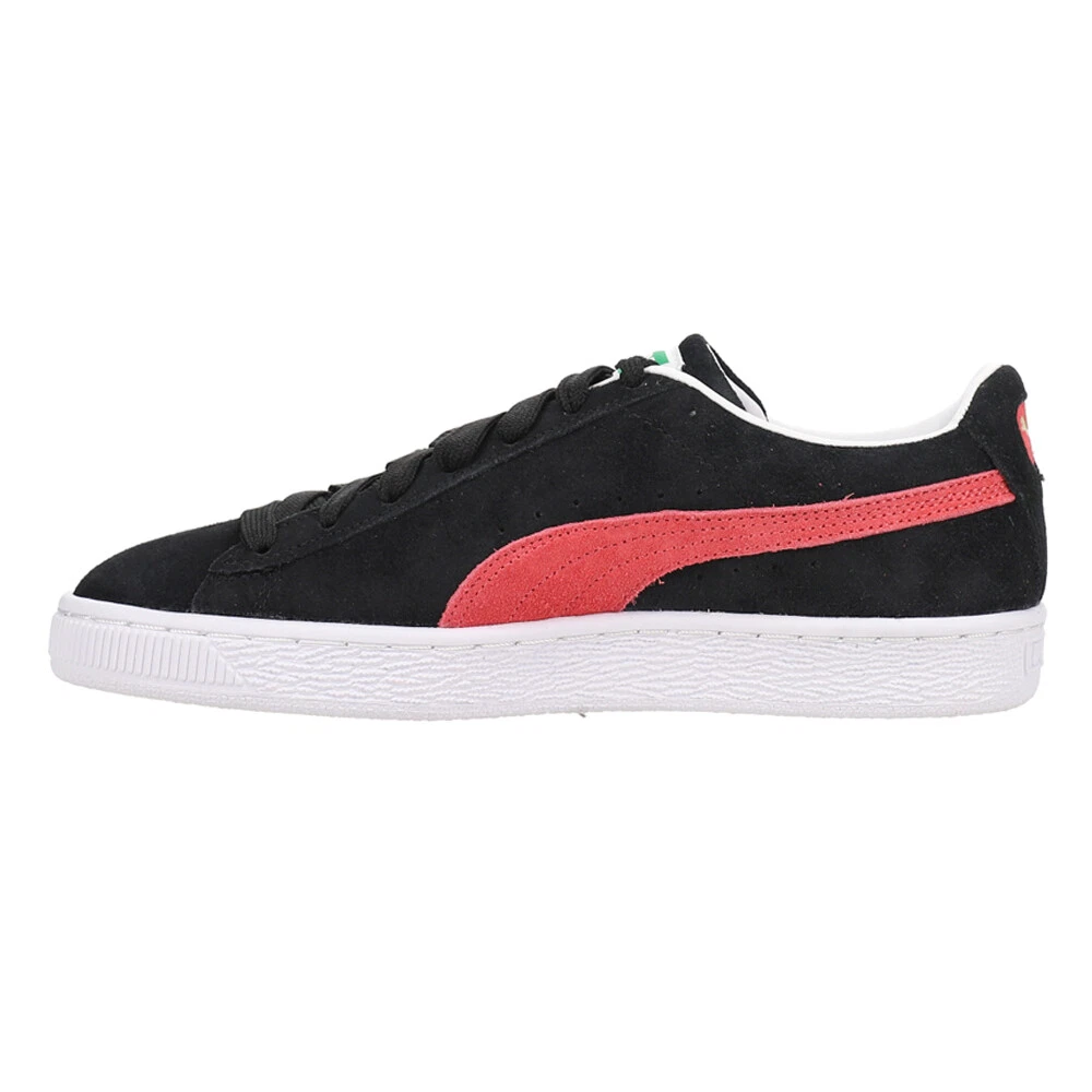Suede Classic XXI Lace Up Sneakers Product Details Suede upper Synthetic leather lining Rubber midsole Rubber outsole First hitting the scene in 1968, the iconic Puma Suede Classic XXI is introduced in an updated rendition. Featuring a suede low-top silhouette, the signature full suede upper is still in place. Synthetic leather comprises the lining, while the comfortable sockliner provides optimal comfort with each step. A rubber midsole and outsole offer optimal traction and durability, while gold metallic foil PUMA is placed at the laterals. PUMA Formstrips at the side with perforated detailing completes the design. Additional Details Color: Black, Pink Occasion: Casual Gender: Womens Age: Adult Brand: Puma