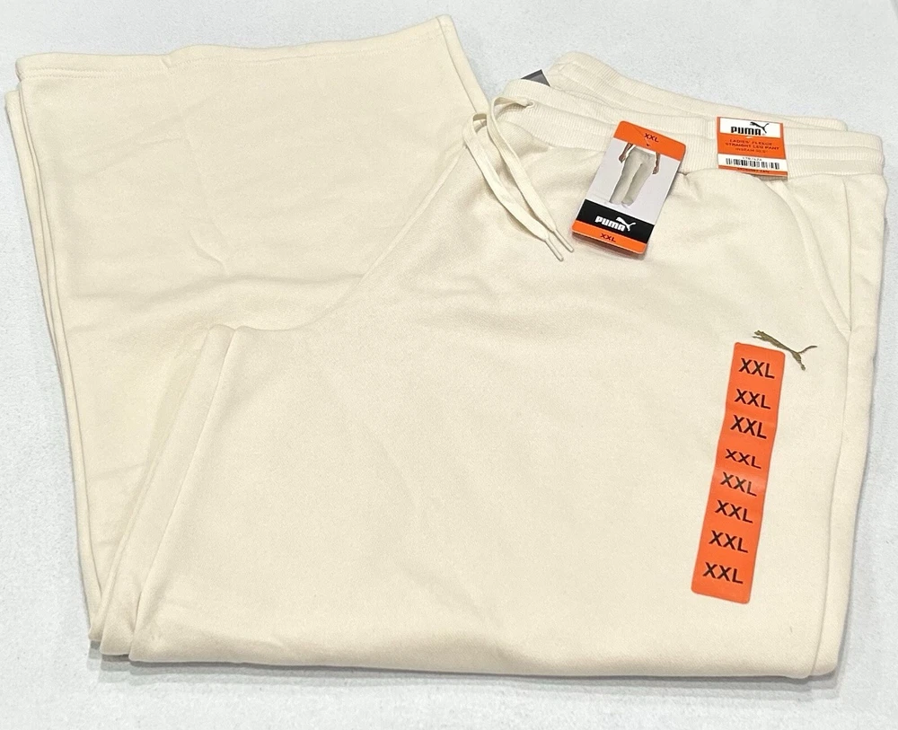 Puma Women's Fleece Straight Leg Pants Size: XX-Large Color: Tan Content: Shell: 66% Cotton / 34% Polyester RIB: 98% Cotton / 2% Elastane Pocket Bag: 100% Cotton