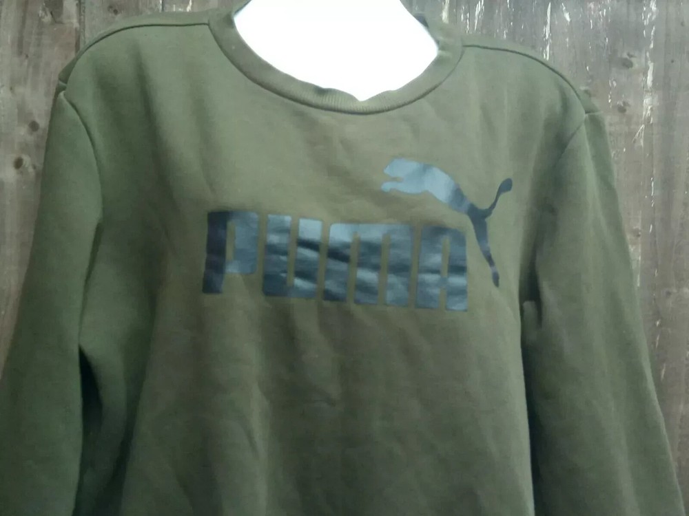 Puma women's long sleeve boxfit sweatshirt UK S Green with graphic print to chest Pullover 23'' pit to pit 23'' from neck to bottom hem In very good+ used condition, very light wear