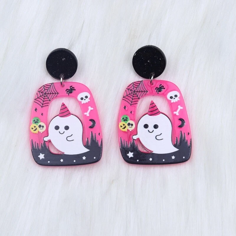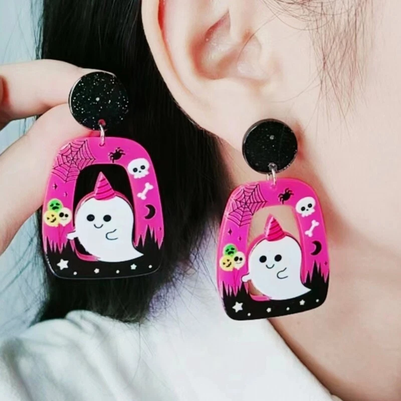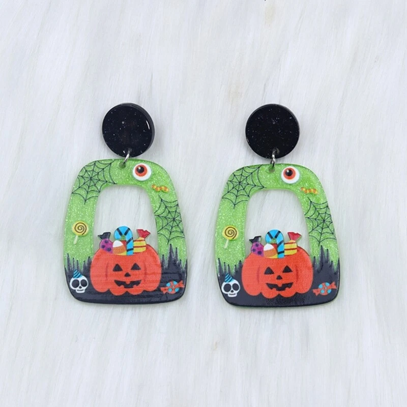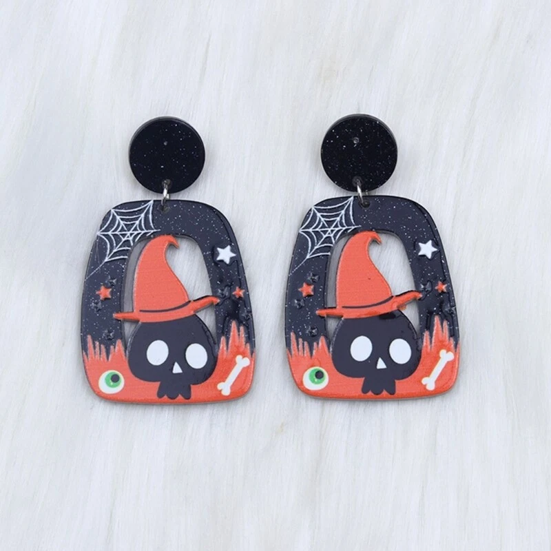 Features: Elevates your with these trendy and eye catching Halloween Acrylic Earrings. material lightweight and acrylic material, these earrings are comfortable to wear and can withstand daily use. These earrings are suitable for various occasions such as Halloween parties or other themed parties, adding a festive The exaggerated of the earrings is eye catching and unique, making them excellent accessory for street fashion or music festivals. Whether you're attending a party or going out for a casual outing, these earrings will add a touch of charm to your outfits. Specifications: Acrylic Pumpkin Hat Skull Size: As Shown In The Picture Package Includes: 1Pair Earrings note: Please allow 1-2cm errors due to manual measurement, make sure that you do not mind before you order. Due to the difference between different monitors, the picture may not reflect the actual color of the item.