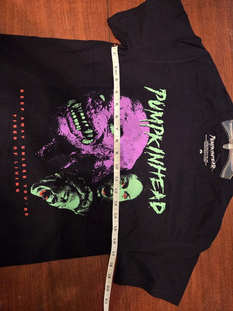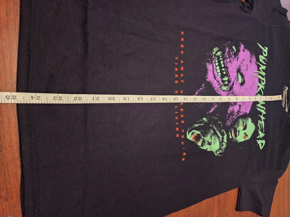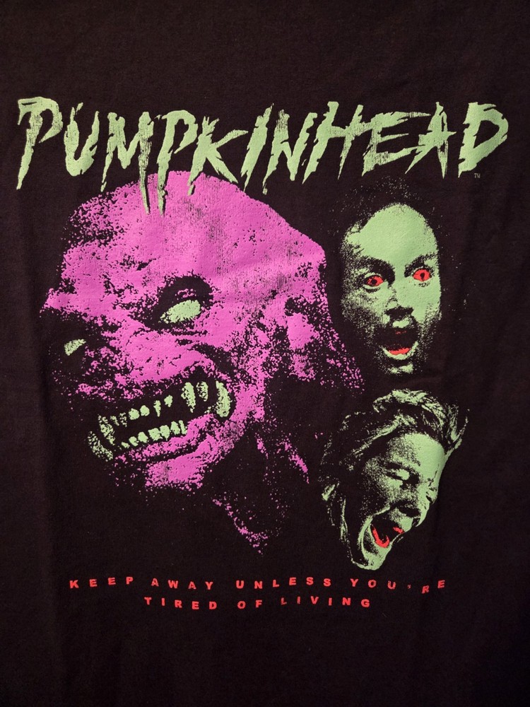 The Pumpkinhead Movie T-Shirt featuring Lance Henriksen is a must-have for fans of 80's horror. Made from comfortable cotton material, this black shirt with a crew neck and short sleeves is machine washable and perfect for all seasons. The regular fit and small size make it ideal for any adult looking to add a touch of horror to their wardrobe, with a design that pays homage to the iconic film. Whether you're a collector of vintage horror memorabilia or a fan of classic horror films, this shirt is a stylish and practical addition to your collection.