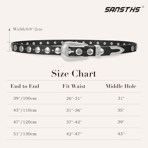 Return Policy Fast Delivery Trusted seller Women Studded Belt for Jeans Fashion Punk Leather Belt Vintage Western Ladies Belts for Dresses Product Description Shipping Returns Payment Shipping Shipping is FREE to all addresses other than APO/PO boxes in the lower 48 states. All our stock ships from US-based warehouses. Shipped via USPS or UPS (depending on location and package weight) Unless stated otherwise, all orders will ship within 24-72 hours of your payment being processed. Check our feedback to see the great reviews of FAST shipping we offer. Returns Seller does not accept returns Payment We currently accept payment via eBay managed payments only. Once payment is cleared, we will dispatch your shipment within 1-3 business days. Please refer to the "Shipping" tab for more information regarding shipping speed to your destination.