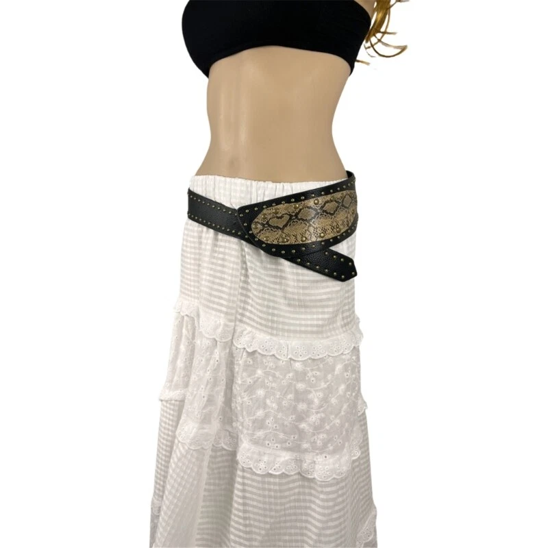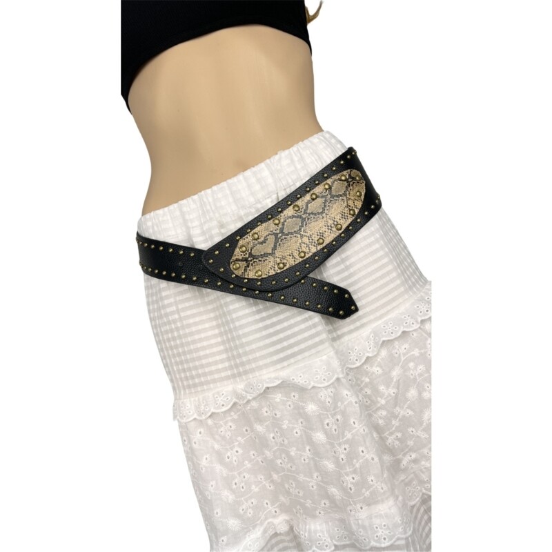 Features: Modern studded wide waist belt for women and girls. Unique wide belt and cool studs, easily pair with your cloth. Add highlight to your everyday look with our fashionable belt. Show your figure, such as party, nightclub, anniversary... You can measure your waist before you buy to avoid trouble with subsequent purchases. Specifications: Component: PU Length: Approx.103cm/40.55inch Quantity: pc Package Includes: 1x Waist Chain note: 1.Please allow 1-2cm errors due to manual measurement, note that you donot mind before you order. 2.Due to the differences between different monitors, the picture may not reflect the actual color