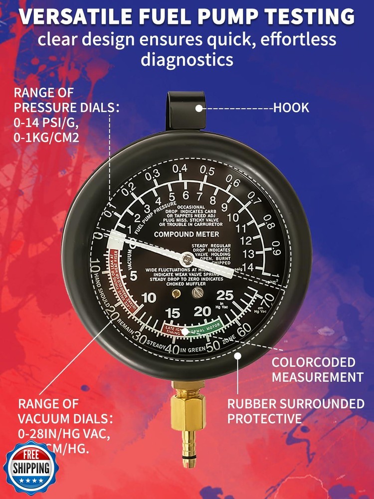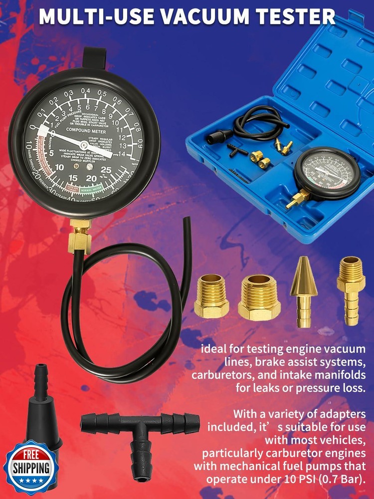 This vacuum gauge is a must-have for any DIY mechanic! It handles fuel pump pressure and vacuum diagnostics with precision, making it super versatile for carburetor engines. The clear readings and durable build make troubleshooting a breeze. Perfect for checking fuel delivery or vacuum leaks—super reliable and easy to use. Highly recommend for quick, accurate diagnostics!