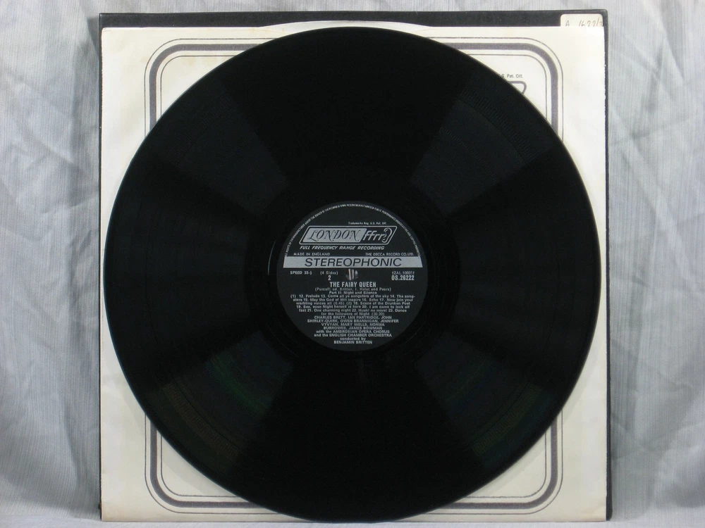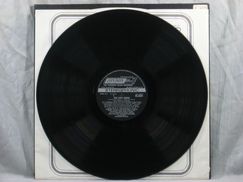 This massive 1972 British import double LP boxed set from the London ffrr ("Full Frequency Range Recording") label of London Records (OSA-1290) presents a performance of The Fairy Queen by Henry Purcell. Featured performers include Jennifer Vyvyan (1st Soprano), Mary Wells (2nd Soprano), Norma Burrowes (3rd Soprano), Alfreda Hodgson (Mezzo-Soprano), James Bowman (1st Counter-Tenor), Charles Brett (2nd Counter-Tenor), Peter Pears (1st Tenor), Ian Partridge (2nd Tenor), Owen Brannigan (1st Bass) and John Shirley-Quirk (2nd Bass). They are accompanied by the Ambrosia Opera Chorus (Kenneth Sillito, Leader) and the English Chamber Orchestra, conducted by Benjamin Britten and featuring Philip Ledger (Harpsichord Continuo), Kenneth Heath (Cello Continuo), Martin Gatt (Bassoon) and Peter Graeme (Solo Oboe). Album notes are in English by Imogen Holst, and are part of a large (album-sized) 16-page booklet discussing the opera, composer, lyrics and performance. Also included is a 3-page foldout catalog of other titles in the London ffrr series. The outer box is in excellent condition, and both front and back covers have no corner splits or other damage. We noticed during photography that the box lid was probably originally hinged on its left side, but the wraparound binding (with the stamped spine titles) appears to have been very precisely sliced down the back edge to cleanly separate the lid from the base. The inside of the top lid has a small pencil notation at the lower left. (Photo 3) The outer box shows a small collection index sticker in the upper right corner of the back . (Photo 2) This is one of many titles from an extensive collection of classical LPs and CDs that we will be listing here. All have been carefully stored for many years, played only on premium equipment, and show little to no wear. NOTES: Album sleeves may have a small index sticker, usually in the upper right corner of the back, which was applied when the album was first purchased for this private collection. Please be sure you know the Shipping charge to your address before bidding. See the Shipping and Handling section of this listing for all rates, including international Shipping charges. Please do not copy any part of this listing without permission.