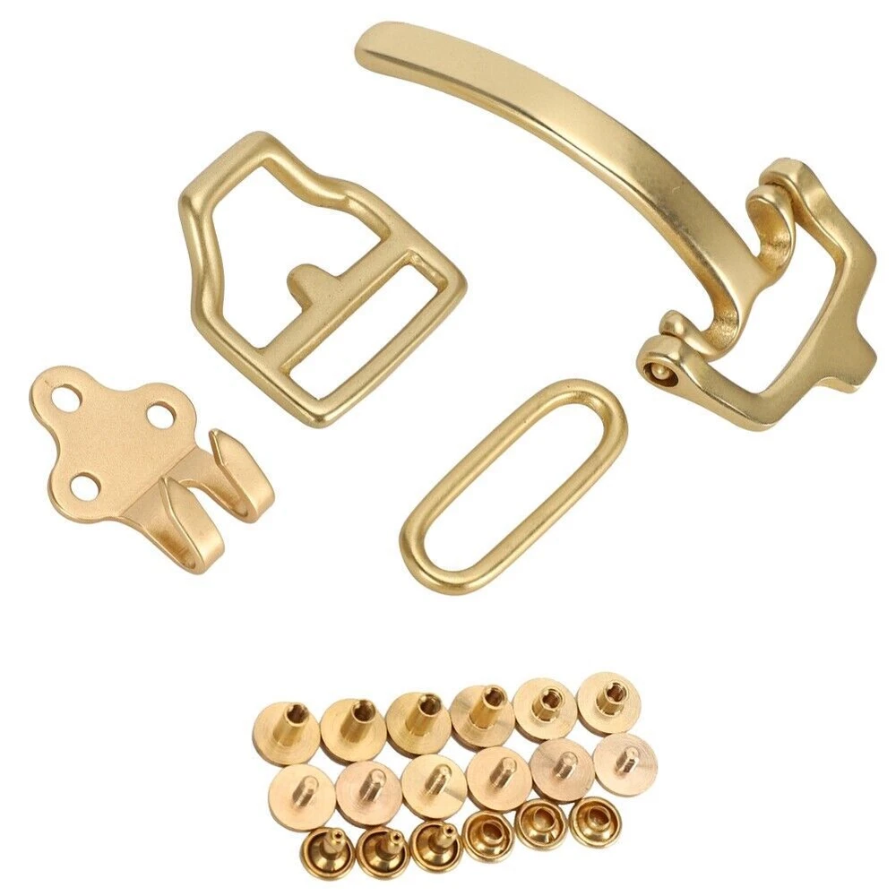 Feature: 1. Made from high quality brass material, which is corrosion resistant and very durable. 2. A good choice for your collar, belt or other saddle products. 3. Solid brass, ideal for belts, bags and a variety of leather goods. 4. Fine workmanship, this belt buckle set fit men's and women's. 5. Specially designed for classical cavalryman buckcle. Specification: Condition: Brand New Item Type: Belt Buckle Set Material: Brass Color: As Pictures Shown 2pcs screws 4mm/0.2in(height) 4pcs 7mm/0.3in 3pcs 8x6 rivets Package List: 1 set of Belt Buckle
