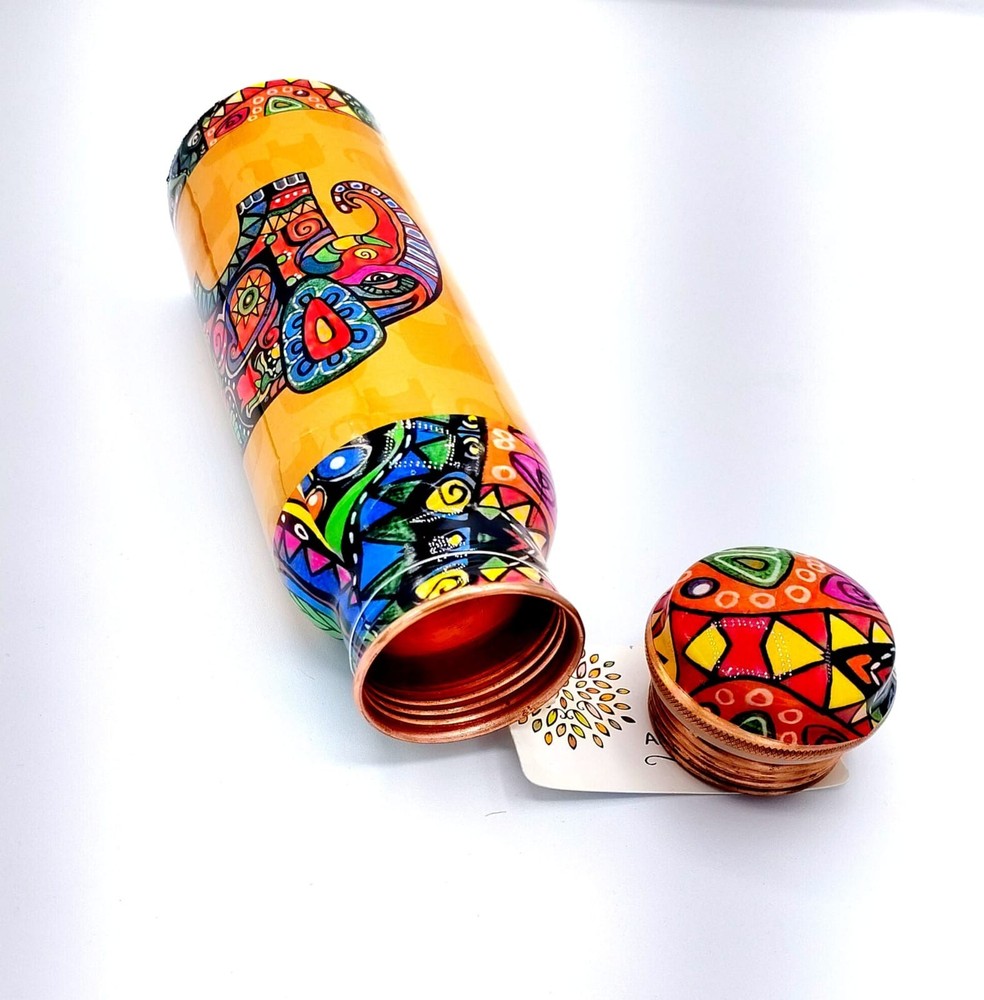 The Pure Copper Water Bottle is a leak-proof vessel made of copper, originating from India. This handmade product is perfect for sports, yoga, and everyday use. With its pristine material and craftsmanship, this copper vessel is ideal for storing and consuming water in a stylish and practical way.