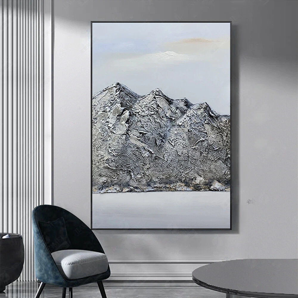 Pure Hand-Painted Oil Painting Snow Mountain Thick Texture Abstract Painting