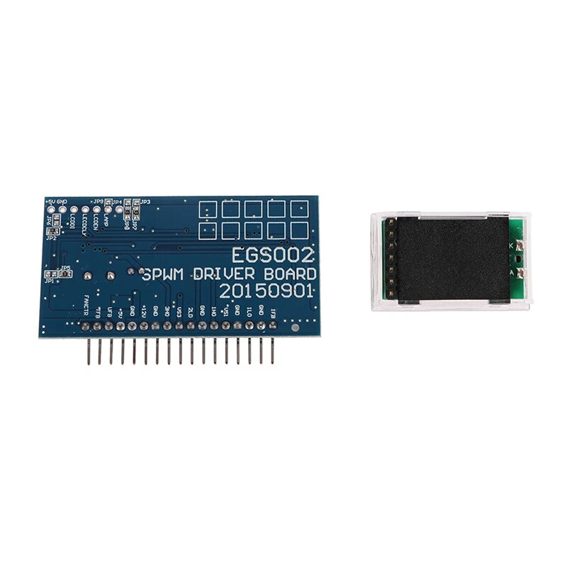 EG8010 is a digital, function very well bring their own dead-time control of pure sine wave inverter generator chip, used in two-stage DC-DC-AC power conversion structure or single-stage DC-AC power frequency transformer Boost architecture, an external 12MHz crystal oscillator, to achieve high precision, and harmonic distortion is very small, 50Hz or 60Hz pure sine wave inverter ASIC. The chip uses CMOS technology, the internal integration of SPWM sine generator, dead time control circuit, the multiplier factor range, soft start circuit, protection circuit, RS232 serial communication interface and a serial LCD driver module 1602 functions. Features: 5V single power supply Pin set up four kinds of pure sine wave output frequency: fixed frequency 50 hz pure sine wave; 60 hz fixed frequency pure sine wave; 0-100 hz pure sine wave frequency is adjustable; 0-400 hz pure sine wave frequency is adjustable. Unipolar and bipolar modulation Comes with deadband control, pin set up 4 dead time: 300nS dead time; 500nS dead time ; 1.0uS dead time ; 1.5uS dead time External 12MHz crystal oscillator PWM carrier frequency 23.4KHz Voltage, current, real time temperature feedback Overvoltage, undervoltage, overcurrent and overheating protection Soft-start mode pin setting the response time of 1S Serial communication to set the output voltage, frequency and other parameters External External serial port 128 * 32 LCD module 1602 display the voltage, frequency, temperature and electric current of the inverter and other information; Applications: Single phase pure sine wave inverter PV Inverter Wind power inverter Uninterruptible Power Supply UPS System Digital generator system IF power Single-phase motor speed controller Single-phase inverter Sine wave dimmer Sine wave regulator Sine wave generator LCD description: In the use of the LCD,Connection EGS002 driver board and LCD cable must use shielded cable, otherwise.Inverter, high-voltage high-current environment will seriously interfere with the operation of the drive plate Preview:
