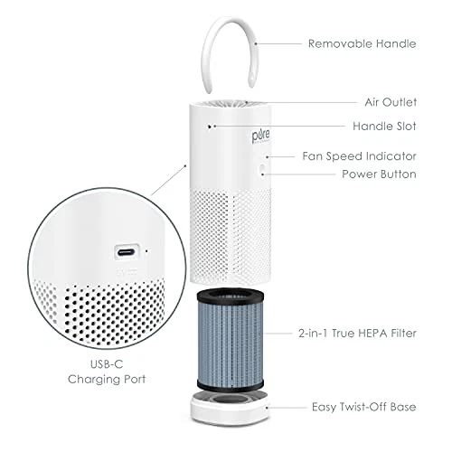 Return Policy Fast Delivery Trusted seller PureZone Mini Portable Air Purifier - True HEPA Filter Cleans Air, Helps Alleviate Allergies, Eliminates Smoke & More — Ideal for Traveling, Home, and Office Use (White) Product Description 2-STAGE AIR PURIFICATION: Clean your personal air from 99.97% of dust, pollen, pet dander, smoke, and odors. Stage 1: Activated carbon pre-filter; Stage 2: True HEPA filter. VERSATILE DESIGN: Whether upright or on its side, our innovative adjustable handle allows this portable air purifier to adapt to suit your needs 3 FAN SPEEDS: Find your optimal fan settings with low, medium, and high options IDEAL FOR TRAVEL: Weighing under 1 lb, this on-the-go small air purifier keeps your personal space clean for up to 12 hours (depending on fan speed) with a rechargeable lithium-ion battery. At your final destination, plug it in for continued fresher air. WHAT YOU GET: Portable air purifier, 2-in-1 filter, USB charging cable, and ’s d 5-Year . Our customer support team provides daily quality service and peace of mind to millions worldwide all from a brand you can trust. Shipping Returns Payment Shipping Shipping is FREE to all addresses other than APO/PO boxes in the lower 48 states. All our stock ships from US-based warehouses. Shipped via USPS or UPS (depending on location and package weight) Unless stated otherwise, all orders will ship within 24-72 hours of your payment being processed. Check our feedback to see the great reviews of FAST shipping we offer. Returns Seller does not accept returns Payment We currently accept payment via eBay managed payments only. Once payment is cleared, we will dispatch your shipment within 1-3 business days. Please refer to the "Shipping" tab for more information regarding shipping speed to your destination.