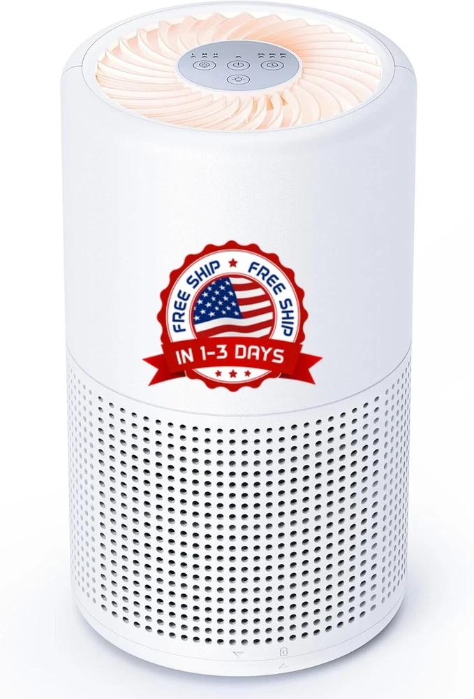 Filtración de partículas eficiente: el purificador de aire utiliza un filtro HEPA H13. Simplemente enciéndalo y mantenga un ambiente limpio y tranquilo y brinde salud a las familias. Alta tasa de circulación: los purificadores de aire para el hogar adoptan tecnología de doble canal y una salida de aire de 360°, refrescando el aire 5 veces por hora en habitaciones de hasta 215 pies cuadrados / 20 m² de cobertura. El pequeño purificador de aire portátil es fácil de colocar en cualquier lugar que desee. Uno es suficiente para mejorar eficazmente la calidad del aire interior. Utilice este producto en una habitación dentro del área de 215 pies cuadrados / 20 metros cuadrados para obtener una mejor experiencia. Funcionamiento de bajo decibelio: los purificadores de aire H13 para dormitorio son muy agradables para los que duermen ligeros, lo que permite a los inversores dormir profundamente cada noche. Configure sus purificadores de aire en modo de suspensión y el purificador de aire funcionará a un nivel de ruido casi silencioso de alrededor de 24db a baja velocidad del ventilador. Ultra silencioso pero suficiente para limpiar el aire de su habitación por la noche, brindándole un sueño suave y dulce. Luz nocturna independiente y 5 temporizadores: está diseñado para funcionar como purificador de aire y luz nocturna. El diseño de doble función lo convierte en una buena opción para bebés y niños pequeños, que pueden encontrar la luz suave y brillante como un compañero relajante para la noche. Además, los purificadores de aire vienen con 2-4-8-10-12 temporizadores de cinco funciones que se adaptan a sus necesidades cuando está fuera de casa. Aviso: 1. Abra la cubierta de la base inferior para obtener el adaptador de carga. 2. Retire el envoltorio de plástico del filtro antes de poner en funcionamiento el purificador de aire. 3. Los purificadores de aire para mascotas parpadearán automáticamente si es el momento de reemplazarlos (normalmente cada 3 meses, los filtros de repuesto del purificador de aire deben reemplazarse por filtros independientes).