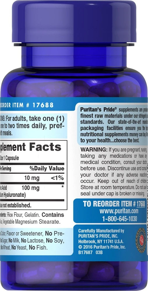 A natural component of joints and connective tissue Helps lubricate joints Cushions joints for comfortable movement No artificial flavor or sweetener, no preservatives, no sugar, no starch, no milk, no lactose, no gluten, no wheat, no yeast, no fish. Sodium free No artificial color, flavor or sweetener, no preservatives, no sugar, no milk, no lactose, no soy, no gluten, no wheat, no yeast, no fish A natural component of joints and connective tissue. Helps lubricate joints. Cushions joints for comfortable movement.