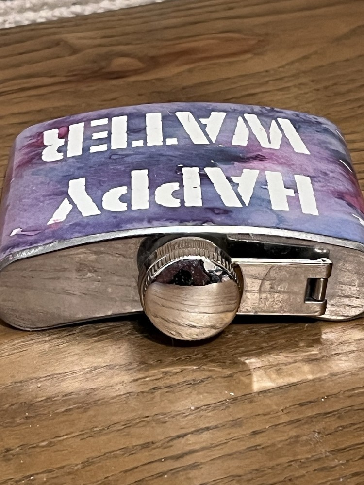Happy Water Purple 5oz Whiskey Flask For Girl Gift Idea . Condition is Used. Shipped with USPS Ground Advantage.