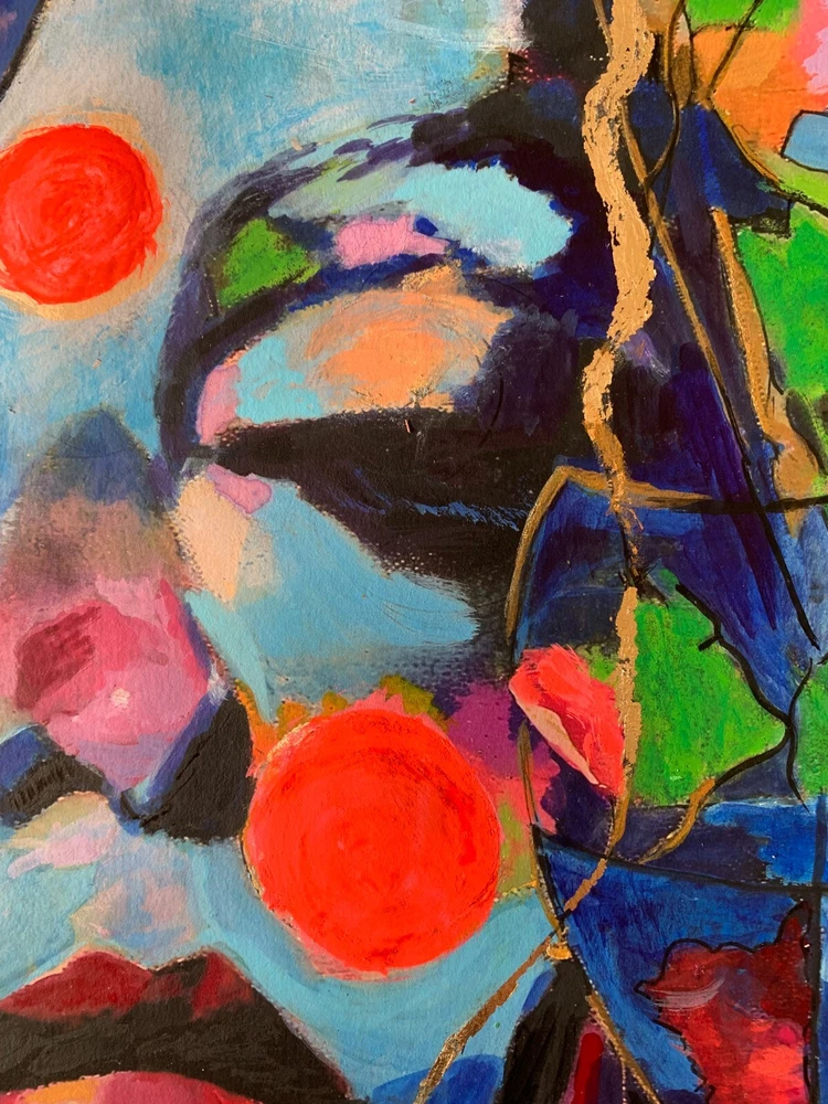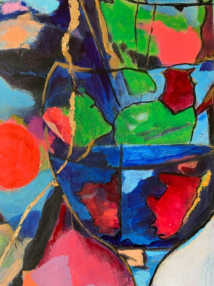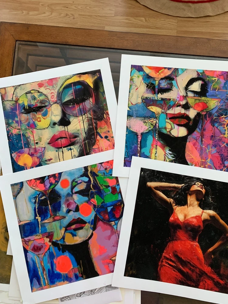 This painting is executed in the style of abstract expressionism with elements of pop art. It combines a portrait of a woman's face with graphic elements such as cocktail glasses, which seamlessly integrate into the overall composition. Deep, rich colors — crimson, violet, turquoise, and golden tones — intertwine with chaotic brushstrokes and lines, creating dynamic emotional tension. Bold accents, such as bright lips and eyes, dissolve into the abstract interplay of light and shadow, adding sensuality and mystery to the piece. The glasses, perhaps symbolizing luxury or hedonism, disrupt symmetry, introducing a surreal illusion. The artwork seems to explore the intersection of dreams and reality, pleasure, and the blurred perception of life. This painting perfectly conveys the mood of nightlife, seduction, and emotional instability. · Create your own unique collection from our prints. · Each print comes with an author’s signature. · Print size: 16" x 16" (40.6 x 40.6 cm). · Shipped in a sturdy protective tube. · If the print is in stock, it will be shipped within a few days. · If the print is not in stock, it will be shipped within 6 business days. · For Giclée prints, the ideal paper is matte and thick , with the following characteristics: Weight: 250–400 gsm. Texture: smooth or lightly textured. Acid-free and cotton-based: essential. Whiteness: medium, for natural color rendering. These features ensure vibrant detail reproduction and preserve the artwork in excellent condition for many years. 😊
