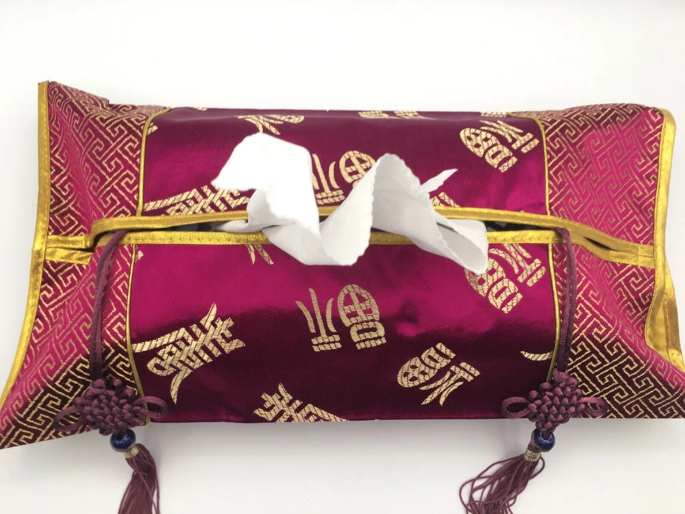 Purple Red Silk Brocade Embroidery Chinese Characters Tassels TISSUE BOX COVER Great condition. Please see picture for more details. ||MSMM-HO-TO2308101806685PURPLECOVER
