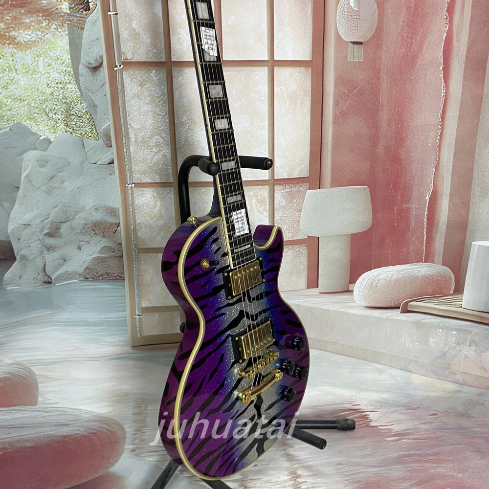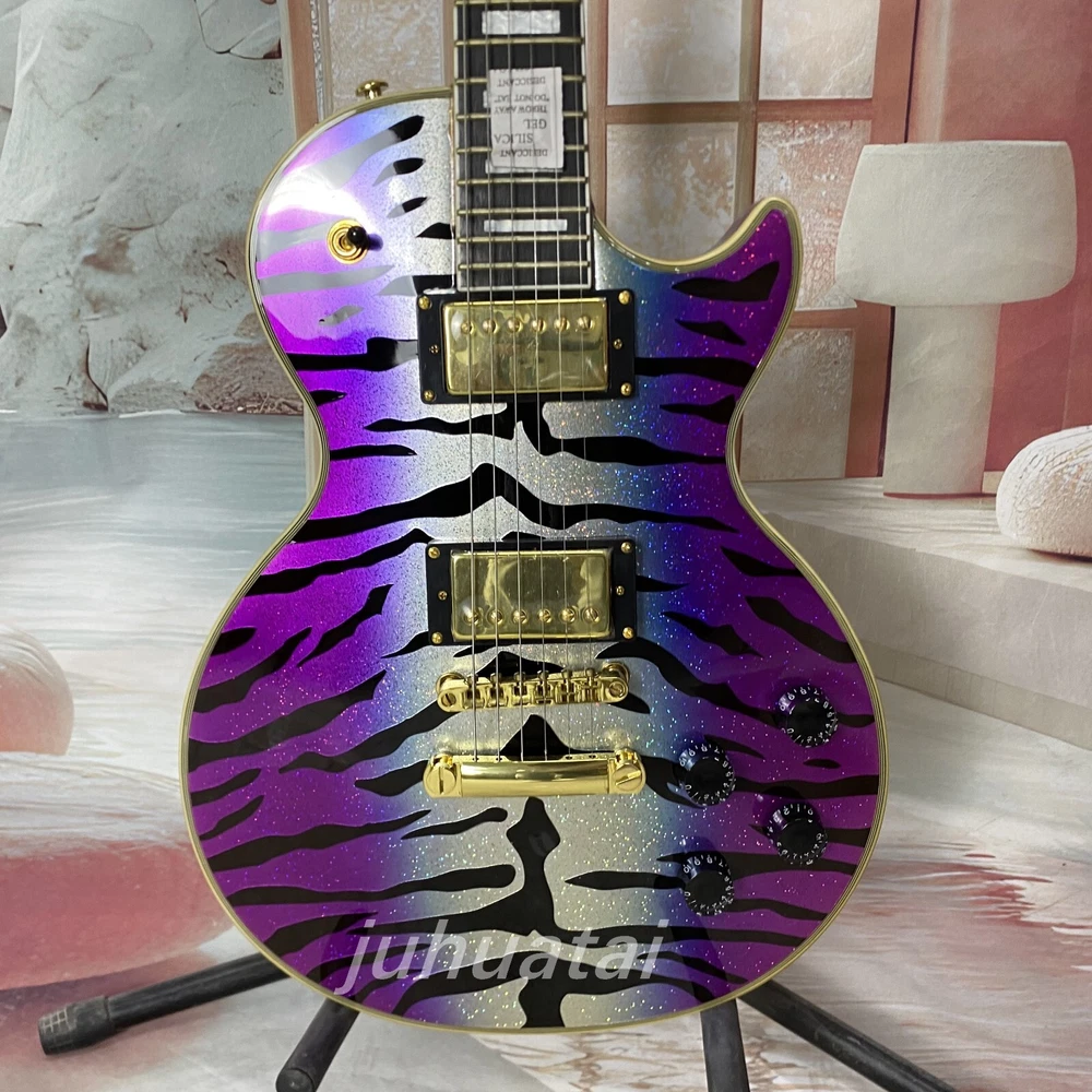Purple Tiger pattern LP Electric Guitar gold hardware 6 string High quality
