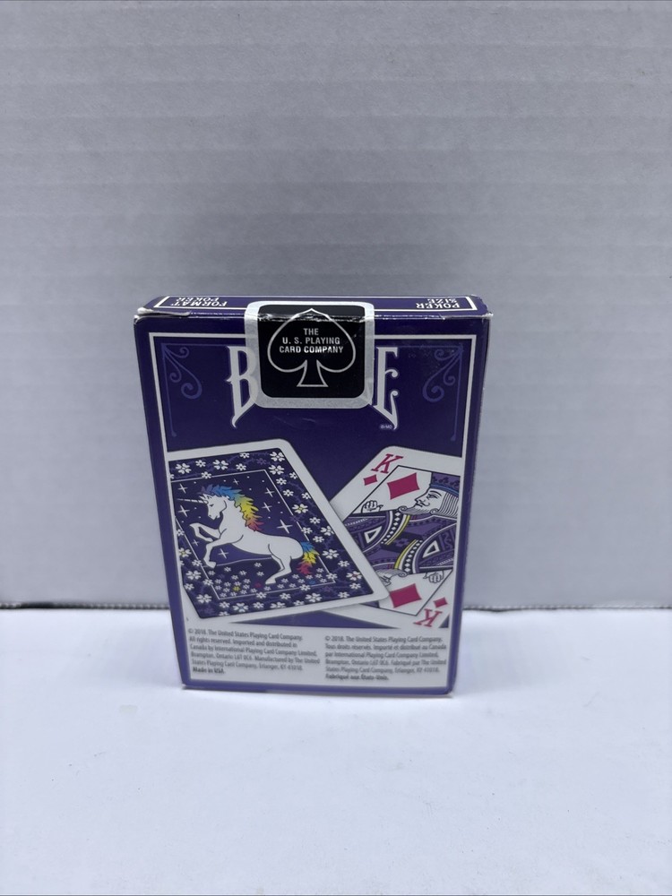 UPC: 073854023754 Product Name: Bicycle Unicorn Color: Purple Deck: 52 Cards + 2 Jokers gtin13: 073854023754 Theme: Unicorns Country/Region of Manufacture: United States Age: Modern (1970-Now) Brand: Bicycle Modified Item: No