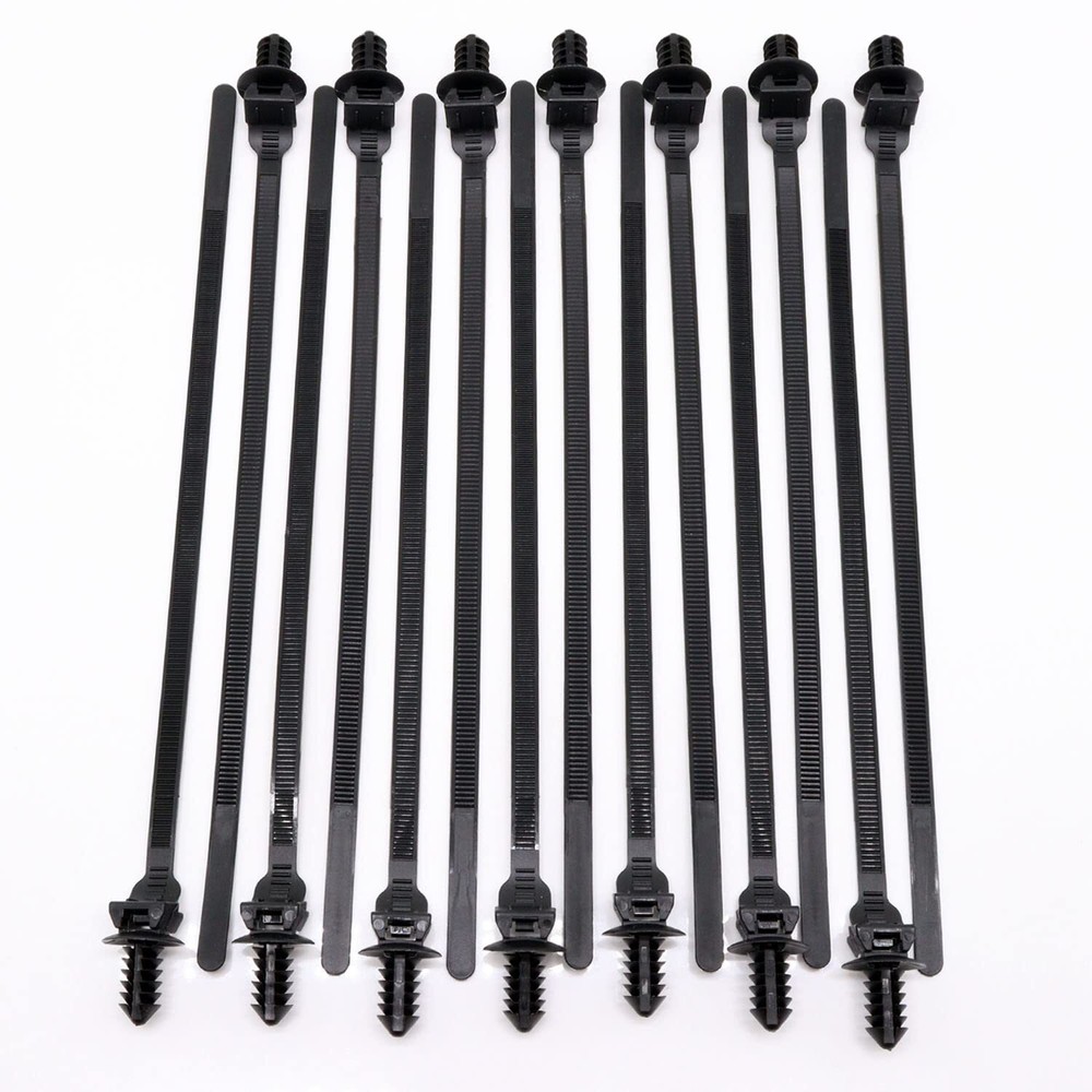 Push Mount Zip Ties, 8 inch Cable Zip Tie Black Wire Tie with Push Pin Fir Tree Zip for Indoor and Outdoor (100 Pack) Size: 210mm*5mm/ 8.3" * 0.2"(L*W); Head Diameter: 8mm/ 0.31"; Fits into 1/4" holes. Material: Made of nylon plastic with flame resistance,safe, environmentally,not easy to break,Nylon Push Mount Cable Zip Tie Good for anchoring wires, cables, and small hoses. Special design: Self-locking with push mount design, Easy to use,the gears are clear, good insulation,It’s a tie-wrap with a fastening clip Perfect to replace in most cars wiring harness Application: Widely used in household, construction, electronic, auto, cable and wire assembly,Good for anchoring cables, (and small hoses/tail light wire harnesses/secure wires/Wire Harness Clips/factory zip tie clips/secure spark plug wires) and is equivalent replacement for similarly factory installed wire loom ties. Package includes: 100 pieces of 8-inch cable zipper ties that stay tough from -40°F to 266°F. If you’re doing any maintenance in the engine bay, do yourself a favor and buy a bag of these so you can just cut the old zip ties out. It will save you a lot of time and headaches. 🌝Feature: Nylon material, excellent flame retardant effect The function of stopping retreating is designed on the cable ties, which means that the cable ties can only be tightened. Can be used to bundle and sort various cables and wires. Self-locking design,It’s a tie-wrap with a fastening clip Perfect to replace in most cars wiring harness 🌝Specification: Material: Nylon Plastic Color: Black Total Length: 210mm/ 8.3" Width: 5mm/ 0.2" Head Height: 17mm/ 0.67" Head Diameter: 8mm/ 0.31" Fits into 1/4" holes Tensile Strength: 350N Temperature Resistance: -40 ~ 266°F (-40 ~ +130°C) 🌝We promise to provide 100% after-sales service for all customers. If you have any problems, we are very willing to solve the problems for you. Shipping We offer FREE shipping on all orders! We ship within Three business days of payment, usually sooner. We use a selection of shipping services such as UPS, FedEx, USPS etc. We only ship to the lower 48 states, no APO/FPO addresses or PO Boxes allowed. Local pickups and combined shipping options are not provided at this time. Return You can return a product for up to 30 days from the date you purchased it. Any product you return must be in the same condition you received it and in the original packaging. Please keep the receipt. Feedback Customer satisfaction is very important to us. If you have any problem with your order, please contact us and we will do our best to make you satisfied. Contact Us If you have any queries, please contact us via ebay. We usually respond within 24 hours on weekdays. Please visit our eBay store to check out other items for sale! Thank you for shopping at our store.
