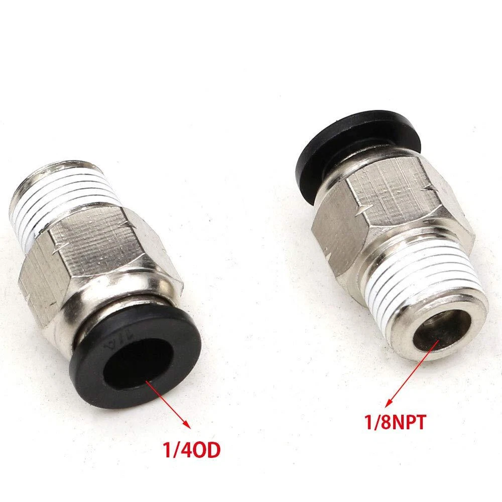 Type:1/4" Od x 1/8" NPT Male Push to Connect Fittings; Body Style: Male Straight 1/4 inch Tube Air Fittings Fluid Admitted: Air, Water (No Freezing) 1/4 Quick Connect Fittings Working Pressure:0-1.0mpa | 0-150psi; Proof Pressure:3.0Mpa | 435psi; Negative Pressure:-100Kpa | -29.5 In Hg 1/4" od tubing pneumatic Fittings Applicable: Pipe PU/ PA/ PE/ PVC; Working Temperature: 0-60°C | 32~140°F Push to connect fittings 1/8 is made of Nickel Plated Brass and quality plastic- corrosion resistance, ductility