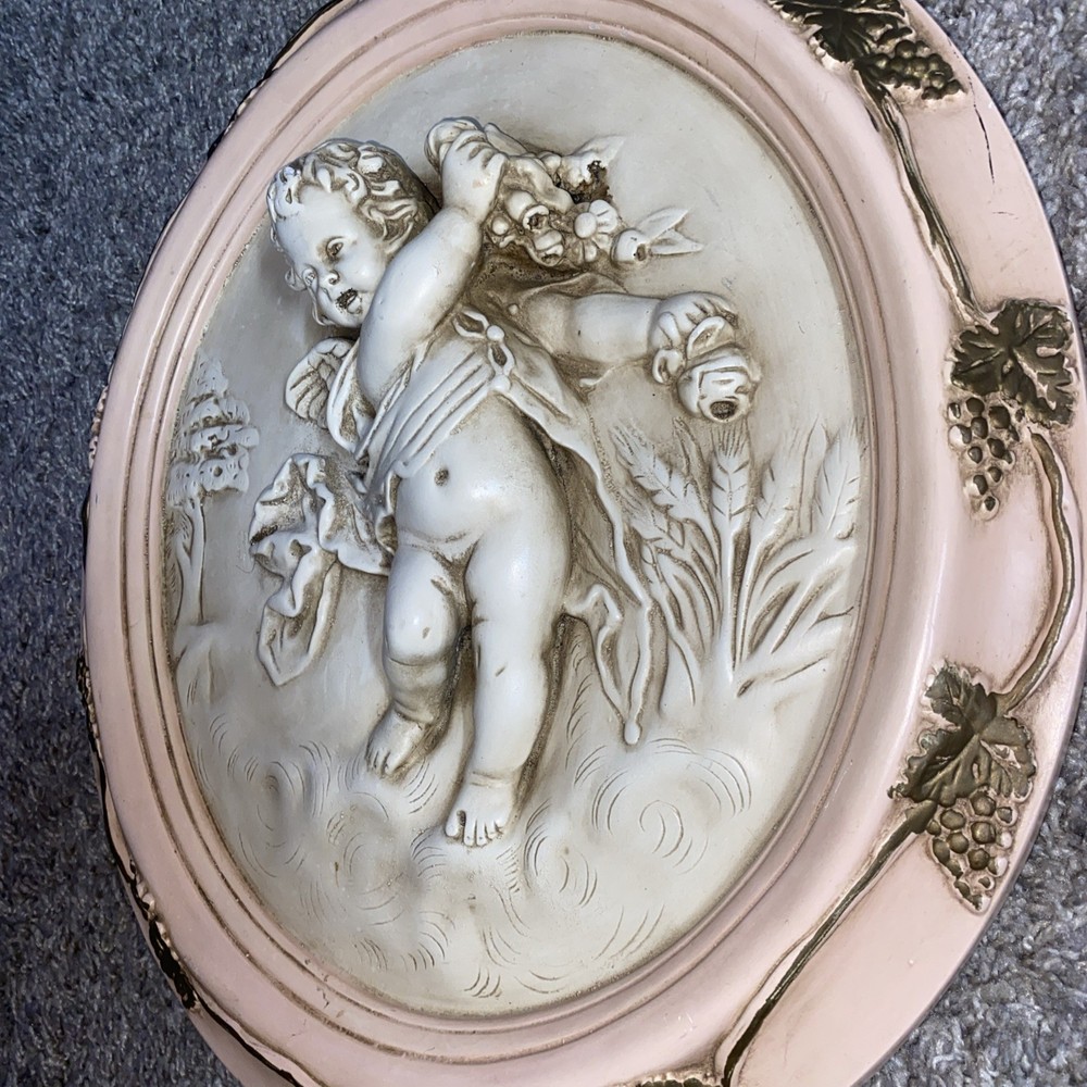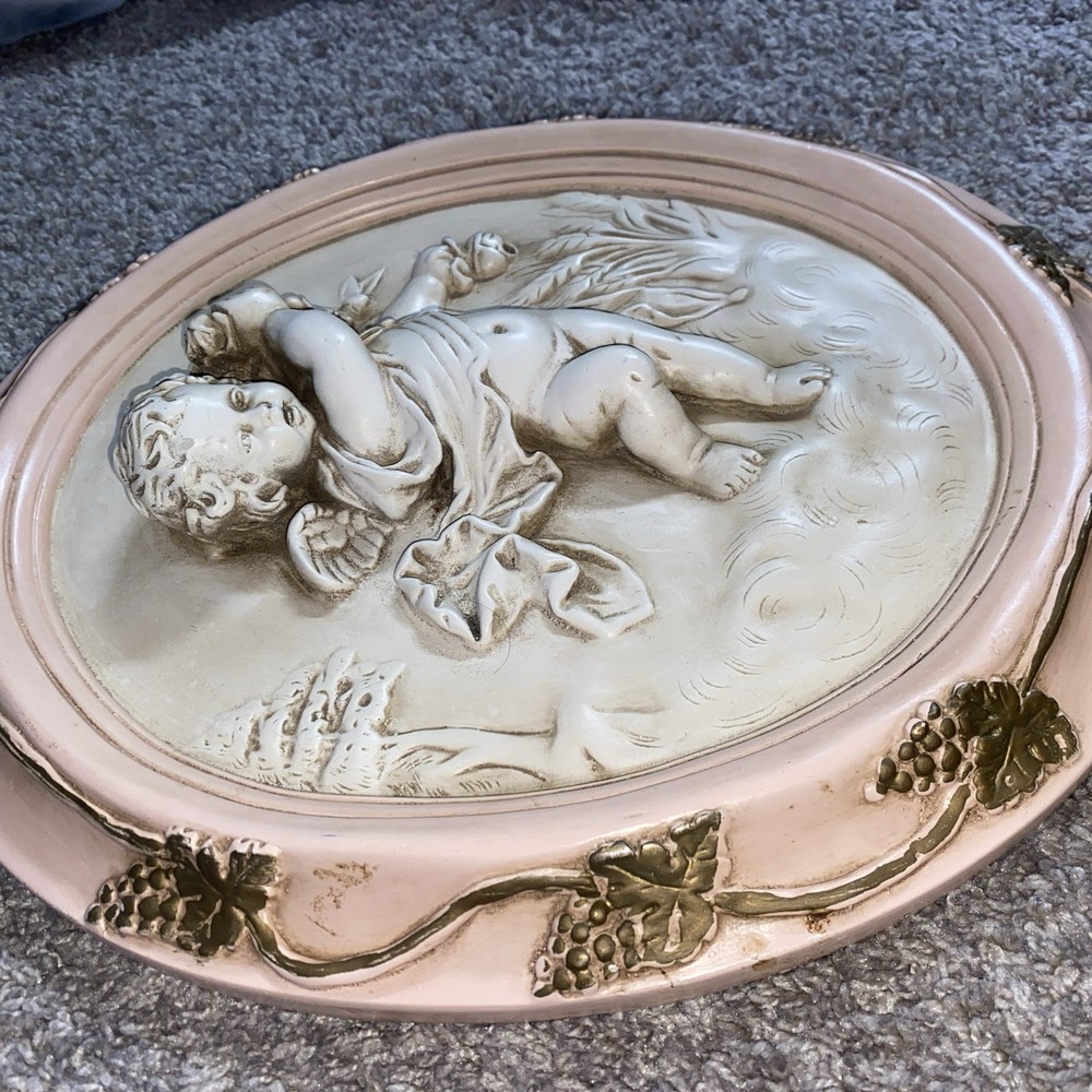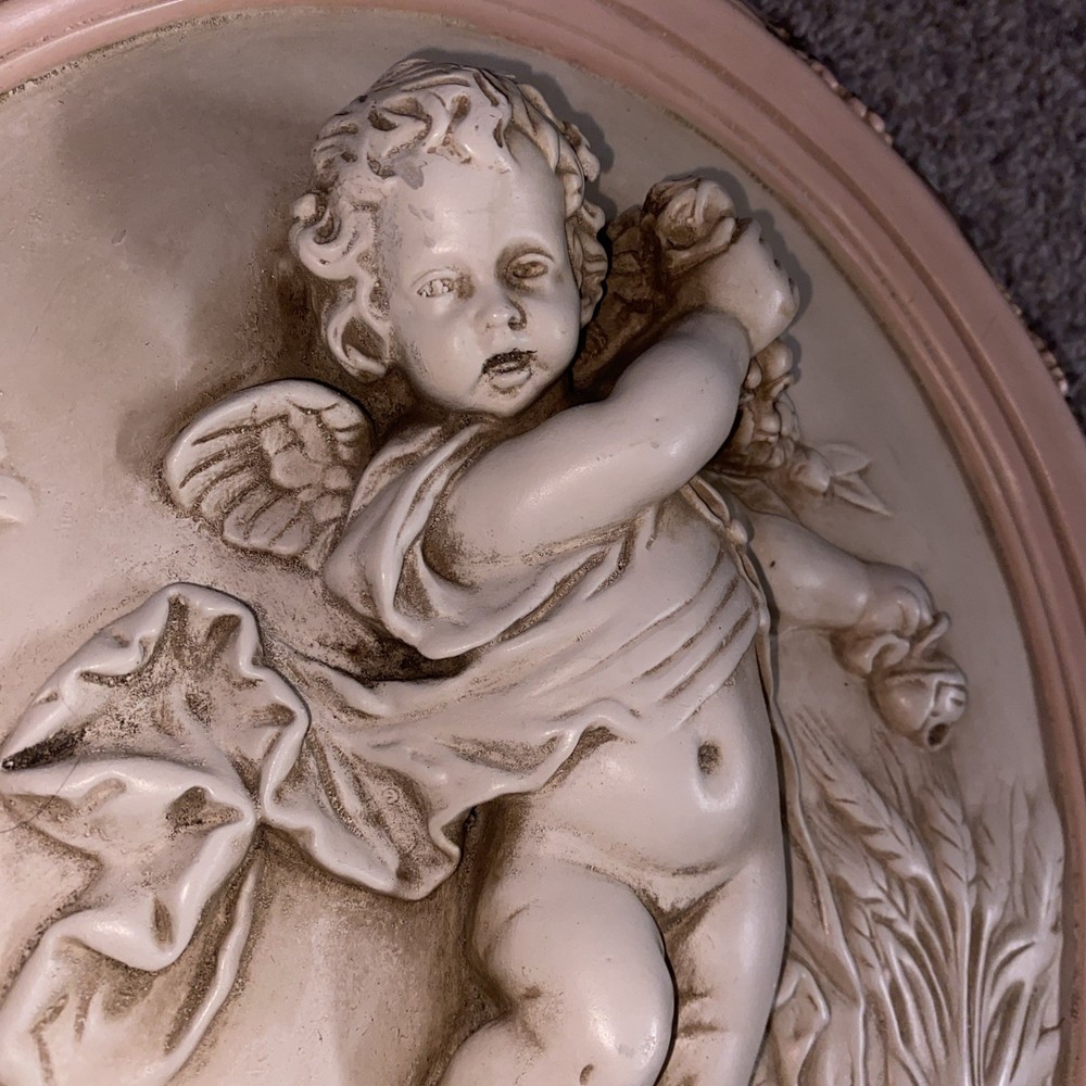 The Putto relief wall art from the mid-20th century reproduction Angel is an exquisite piece of French craftsmanship. This gold-colored sculpture, with its French style and post-1940 age, is a reproduction of an original work. Perfect for adding a touch of vintage charm to any space, this art piece exudes a sense of elegance and grace that complements various decor styles effortlessly.