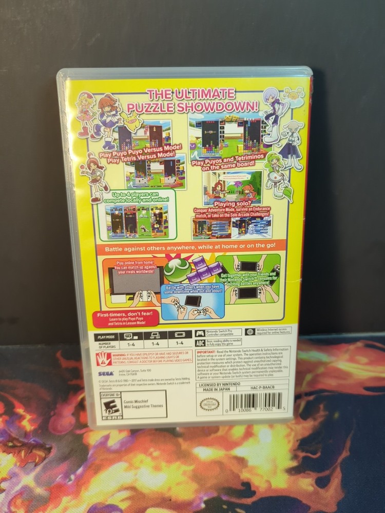 "Puyo Puyo Tetris" is a fun and colorful puzzle game available on the Nintendo Switch platform. Published by Sega Games, this E-Everyone rated game combines the popular "Puyo Puyo" gameplay with the classic "Tetris" mechanics. Players must clear lines and eliminate blocks to prevent their game board from overflowing. With its addictive gameplay and charming graphics, "Puyo Puyo Tetris" is an entertaining choice for gamers of all ages. Works great, excellent condition