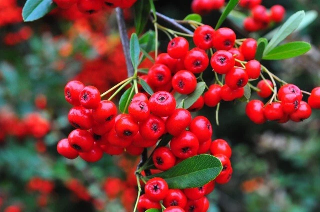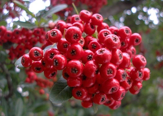 Pyracantha is a genus of thorny shrubs that are mostly evergreen and produce lots of beautiful showy berries, that stay on its stems for long months making those plants very ornamental.