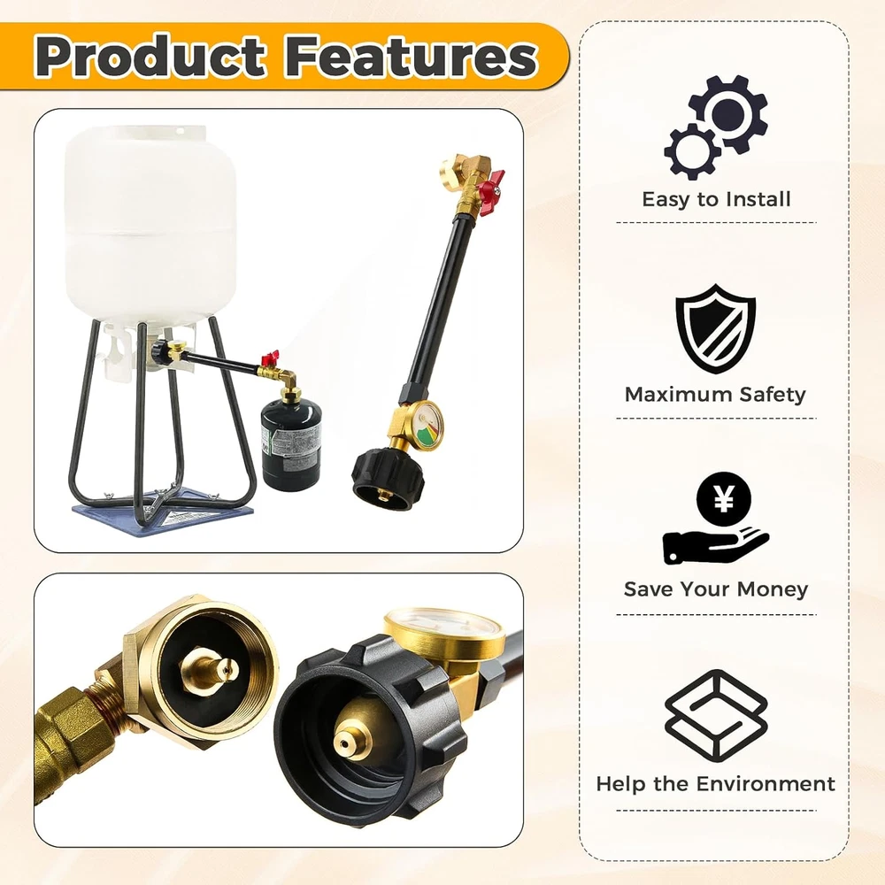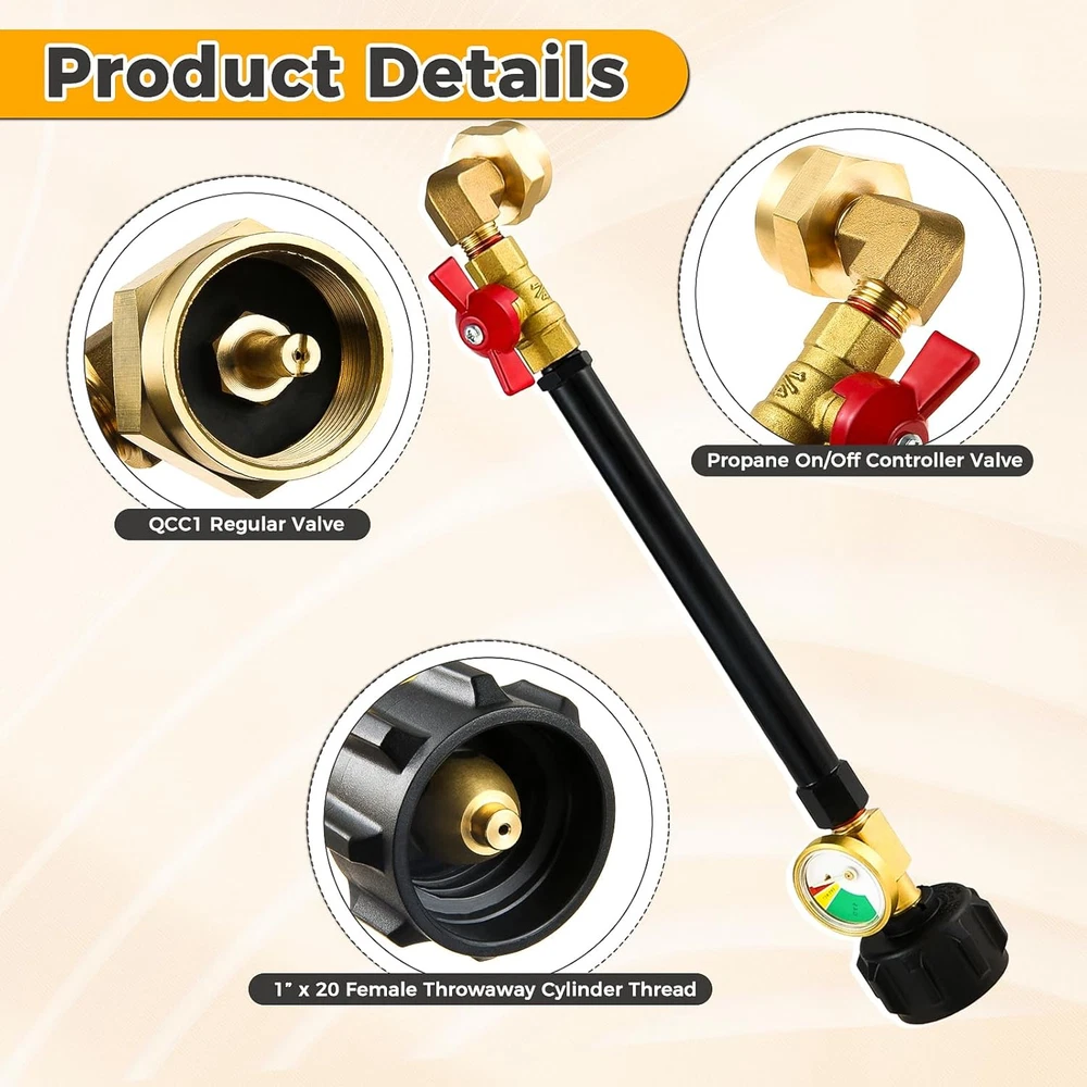 Store New Arrivals Add to Favorite View Feedback Contact QCC1 Upgraded Propane Refill Elbow Adapter, for 1LB Tanks with Propane Tank Gauge Level Indicator and Shut off Control Valve, and Gauge Level Indicator for Refillable Propane Cylinder Description Item Weight 15.8 ounces Country of Origin China Package Dimensions 13.23 x 3.07 x 2.99 inches Easy to Install: Extended version propane refill adapter for 1 lb. tanks with gauge can refill the 1lb camping bottle and connect 5lb -20 lb propane tank cylinder or larger tanks. install with hands, no need for any tools. Wide Application: The propane tank adapter is suitable for the heater, camp stove, portable grill, tabletop grill, and more. Great for camping, tailgating, heating needs or having an outdoor cookout. Safety: The tube is designed with a 90 degree bend to keep smaller tanks upright and increase safety when used. Propane tank gauge level indicator with 3 different colors Dial Gauge can glow in dark. Reusable: Reusable tanks save you money and help the environment. QCC1 Type inlet adapter connects 20~50lbs propane tank cylinder valve with 350PSI rated high-pressure propane extension tube You can close the refill valve anytime if you do not want to refill Services: Let us now if you have any questions and we will answer you as soon as possible. Product Description Allows for Easy Connection QCC1 Propane Regulator Valve makes it easy to connect the coupler to 5 lb. to 20 lb. propane tanks. Wide Compatibility 1"- 20 female throwaway cylinder thread fits all lLB/16.4 oz propane cylinder bottles. 3 Different Colors Day or night, no need to lift/shake your propane tank, just look at the rotatable illuminated dials to know if it's empty, low or full. On/off Controller Valve The red ball valve switch can be easily controlled with a finger at the correct distance without compromising installation space. Great for camping, tailgating, heating needs or having an outdoor cookout. ABOUT US We offer the best prices around on high quality products. Our E-store includes media such as books, movies, music and games while offering electronics, toys, sporting apparel, clothing, tools, general home, garden items and more. SHIPPING We are always working hard to ensure your package arrives as soon as possible. Please understand that some factors like weather, high postal traffic, and the performance of shipping companies are outside of our control. We offer free shipping to the lower 48 states and ship within 2 business days of payment, usually sooner. We do not accept P.O. Boxes. Please provide a physical address. For shipping outside of the continental USA, we only use eBay's Global Shipping Program.The item is shipped to KY and then sent to the rest of the world. International customers are responsible for all duties and taxes. Continue to check out in order to calculate costs for shipping the item to your country. Messages regarding eBay's Global Shipping Program MUST be directed at eBay EXCLUSIVELY. RETURNS We offer a 30-Day Return Policy on items which you are not completely satisfied with. You have the option for a full-refund or an exchange of the item. No returns are available on items shipped outside of the USA. PAYMENT We accept PayPal. CONTACT US This page content is yet to come Please ad us to your favorite seller and visit again later Thank You CUSTOMER SATISFACTION We try our very best to make sure every customer is completely satisfied. If there's a problem, message us! We're happy to help. WE ACCEPT Copyright © 2021 AutoDS. | All Rights Reserved