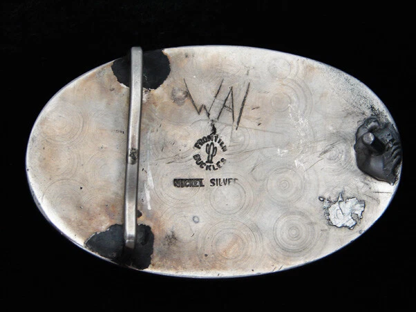 091117133 QI11133 VINTAGE 1970s **HORSE** NICKEL SILVER WESTERN & COWBOY BELT BUCKLE REALLY GREAT BUCKLE ! Scroll Down For More Pictures (ad created with AdGen 16.9 - posted by: GW) GENDER: UNISEX ERA: 1970s MAKER: FRONTIER BUCKLES FINISH: NICKEL SILVER / RED LACQUER INLAY * GREAT VINTAGE BUCKLE !! * PLEASE REFER TO PICTURES FOR MORE DETAILS & CONDITION COMMENTS: * GUARANTEED ORIGINAL VINTAGE ITEM !! MEASUREMENTS: 3.25" (8.3cm) Width 2.10" (5.3cm) Height 1.70" (4.3cm) Max. Belt Width Every item carefully hand measured! A GREAT ONE TO ADD TO YOUR COLLECTION !! **** IMPORTANT **** WE SELL VINTAGE ITEMS THAT MAY DETERIORATE OVER TIME. WE CAREFULLY INSPECT EACH ITEM AND TRY TO NOTE ANY VISIBLE FLAWS, BUT ARE NOT LIABLE FOR DAMAGE THAT OCCURS AFTER PURCHASE. ALL ITEMS ARE SOLD "AS IS" ONLY WITH NO WARRANTY OF ANY KIND EXPRESSED OR IMPLIED. Promotional Payment Information Payment Terms FULL PAYMENT REQUIRED WITHIN 5 DAYS OF PURCHASE! Payment Options Please see this site's payments section for available options. Shipping Information Shipping Rates U.S.A. CANADA OTHERS 1 Buckle $6.00 $15.00 $18.00 2 Buckles $7.00 $16.00 $19.00 3 Buckles $8.00 $17.00 $20.00 4 Buckles $9.00 $18.00 $21.00 <--BEST DEAL!!! FREE U.S.A. SHIPPING ON 10 ITEMS OR $200 TOTAL! FREE INTERNATIONAL SHIPPING ON 20 ITEMS OR $400 TOTAL! All items are shipped with a tracking # or delivery confirmation # in order to comply with buyer/seller protection requirements. International Buyers *Import duties, taxes and charges are not included in the item price or shipping charges. These charges are the buyer's responsibility. *Please check with your country's customs office to determine what these additional costs will be prior to bidding/buying. *These charges are normally collected by the delivering freight (shipping) company or when you pick the item up. DO NOT confuse them for additional shipping charges. *We do not declare merchandise values below actual selling price. We also do not mark items as "gifts". U.S. and International government regulations prohibit such behavior. *Some countries customs clearance can delay arrival of your shipment up to 60 days! BEFORE BIDDING ON OR BUYING OUR ITEMS YOU MUST AGREE TO THE FOLLOWING TERMS: Buyer agrees to pay for item within 5 days of purchase. No returns accepted without prior authorization from seller. Shipping charges will not be refunded or reimbursed on returned items. ***** All items sold "AS IS" only ******