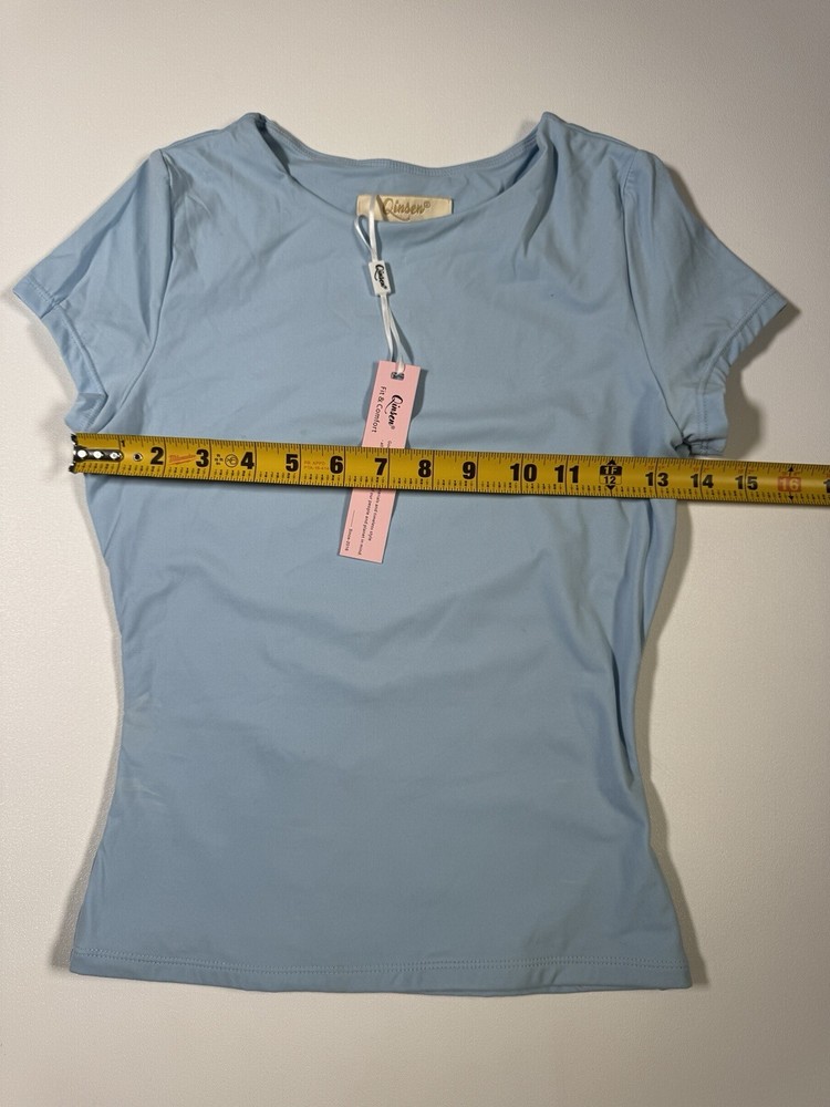 Elevate your wardrobe with this stylish and comfortable Qinsen T-shirt. The crew neck and short sleeves make it perfect for casual wear, while the slim fit design adds a flattering touch. The light blue color and basic style make it versatile enough to pair with any outfit. Made from a blend of 75% polyamide and 25% elastane, this T-shirt is durable and stretchy for all-day wear. It features a lined design for added comfort and is suitable for any season. Whether you're going out for a walk or running errands, this Qinsen T-shirt is a must-have addition to your wardrobe.