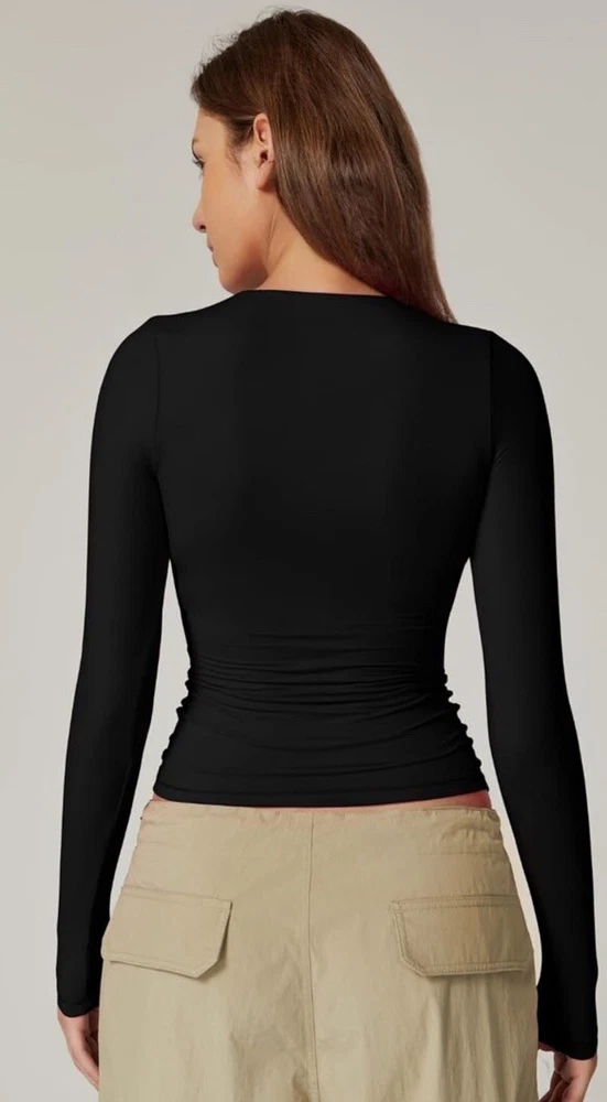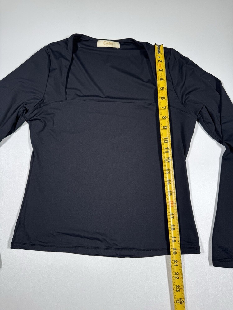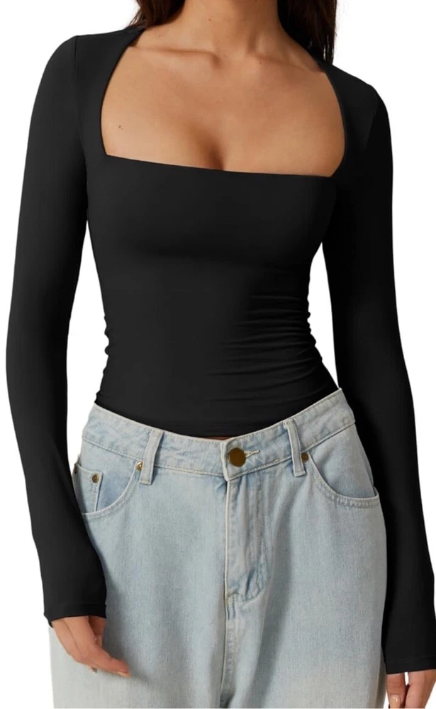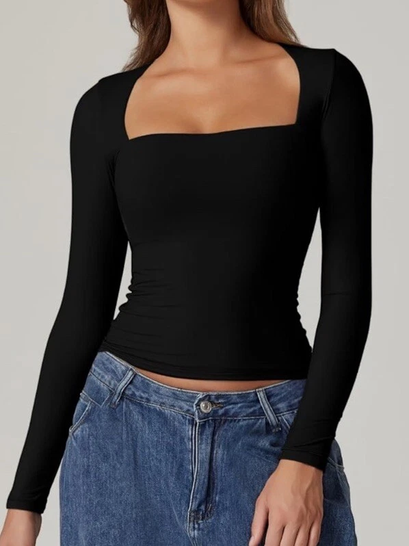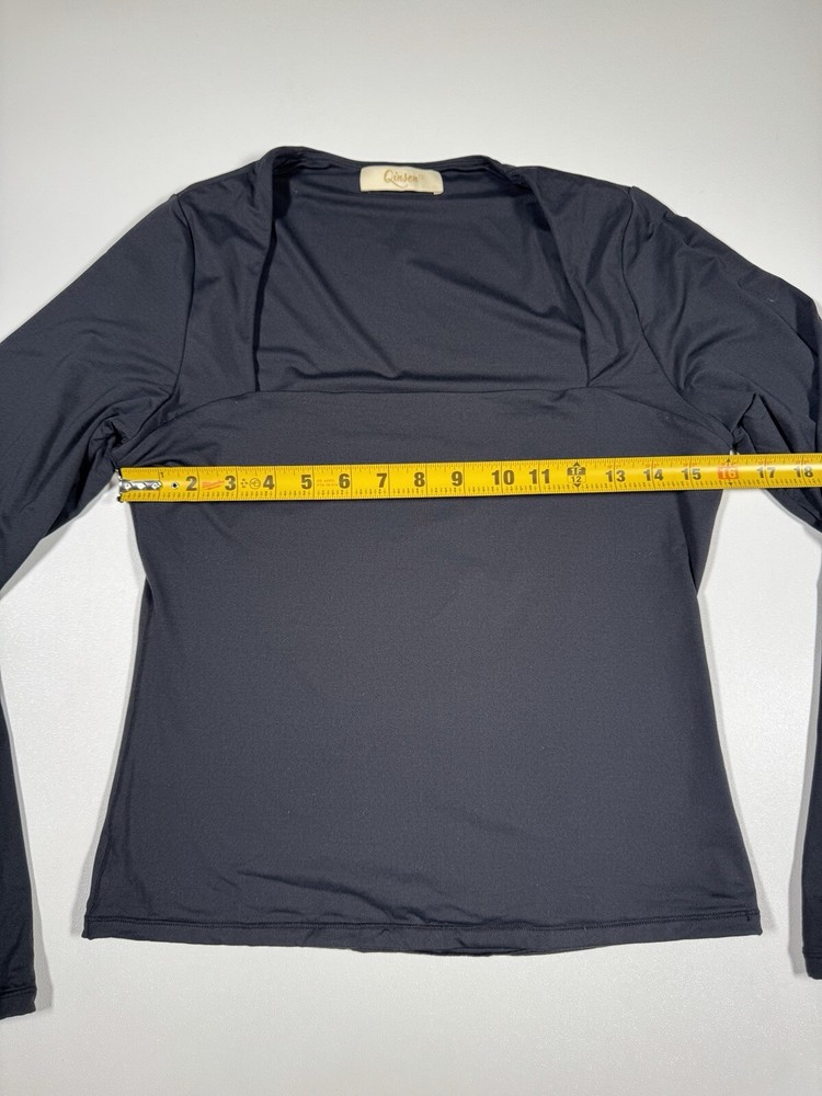 Elevate your wardrobe with this sexy and stylish blouse from Qinsen. Designed with a square neckline and long sleeves, this double-lined top is perfect for casual occasions. The slim fit and classic/fitted sleeve make it a must-have for the winter, fall, and spring seasons. Crafted from a blend of polyamide and elastan, this black blouse is easy to pull on and off with its pullover closure. It's available in size L and is suitable for regular size types. The Qinsen brand is known for its high-quality clothing, and this blouse is no exception. Add it to your collection today!
