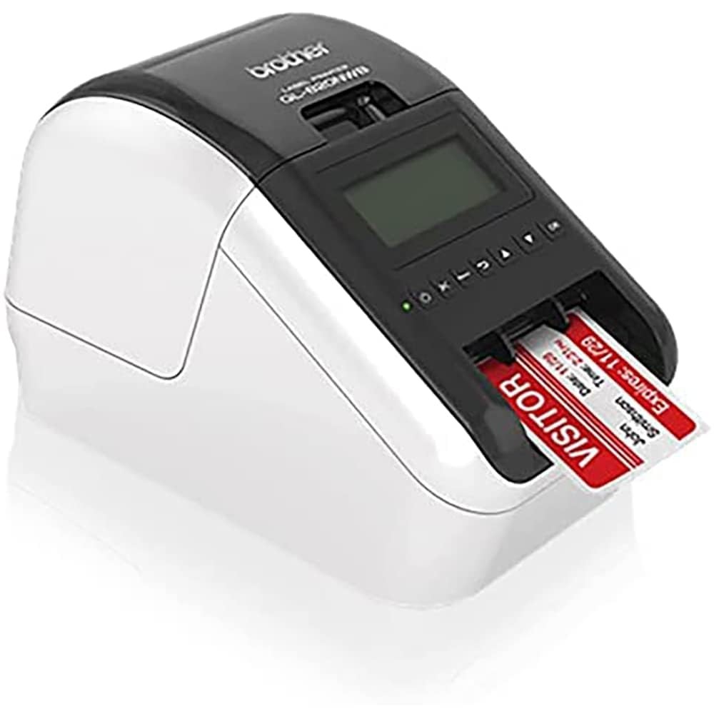 Features The QL-820NWB features Bluetooth wireless technology, Ethernet, 802.11b/g/n Wi-Fi, and Wireless Direct interfaces Print Black/Red labels using DK-2251 Create cost-effective paper labels for packages, envelopes, file folders, name badges, banners, and more Prints up to 110 labels per minute Print labels wirelessly using AirPrint and iPrint&Label app download Convenient, drop-in tape rolls with no ink or toner required Easy to integrate and manage on a network using 's network management tools and free software development kits High-resolution (300 x 600 dpi) printing for crisp text and graphics Prints easy-peel, rounded-corner labels Prints on continuous-length paper and film tapes for banners and signs up to 3' long Use the automatic cutter for precise cuts after each label is printed or to create custom-sized labels Windows and Mac compatible Housing Color: White / Black. The QL-820NWB allows you to print black and red labels using DK-2251 or cost-effective paper labels for packages, envelopes, file folders, name badges, postage, and more. It can print up to 110 standard address labels per minute with black text at 300 dpi. An auto cutter allows for printing one or multiple labels at a time, eliminating wasted label sheets. The QL-820NWB Professional Ultra Flexible Label Printer offers flexible connectivity, including Bluetooth, Ethernet, 802.11b/g/n Wi-Fi, and Wireless Direct interfaces. Also equipped with a USB Host interface, the QL-820NWB can be used with a peripheral, such as a scanner. The backlit monochrome LCD screen allows for standalone use. Add an optional lithium-ion battery for a complete mobile solution. Easy to integrate with free software development kits. Uses genuine DK drop in labeling supplies. Create and print labels from your mobile device when connected to a wireless network via AirPrint and iPrint&Label. Using the free, iPrint&Label app with your Apple iPhone, iPad, and iPod touch or Android smartphones you can quickly access and print label templates - or create your own custom labels with graphics or photos. In the Box: QL-820NWB Professional Ultra Flexible Label Printer; Software, USB Cable, AC Adapter, Quick Setup Guide, Documentation, Starter rolls: DK-1201 Die-cut Standard Address Labels (100 labels), plus DK-2251 2.4" (62mm) Continuous Length Black/Red on White Paper Tape 16.4 ft. (5m). Includes 1 Roll of 400 Address Labels.