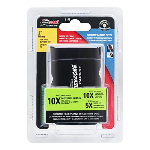 Blu-Mol Extreme 1 1/2" Carbide Tipped "QuickCore" Hole Saw . Up to 5X faster than standard hole saws. Greater heat and wear resistance. C3 Carbide tipped provides extended life and clean cuts. 10x faster core ejection. 10x more life than standard hole saws. QuickCore's Patented Technology provides 10x FASTER HOLE EJECTION through it unique open-ended design Up to 5X FASTER than standard hole saws TCT - TUNGSTEN CARBIDE TIPPED provides extended life and clean cuts 10x MORE LIFE than standard hole saws QuickChange MANDREL for sizes 3/4" to 6"