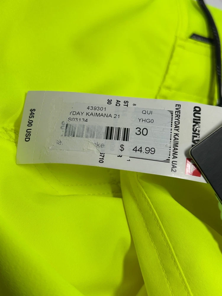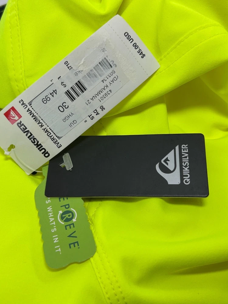 NWT Quiksilver Everyday Kaimana Neon Yellow Boardshorts • Adjustable waist front tie • Lightweight and breathable softshell fabric • Black/silver Quiksilver reflective logo on left pant leg • Rear pocket with angled zip closure • Reflective logo near pocket • Lightweight mesh lining sits above mid thigh Made with recycled polyester/elastane/spandex Made in Indonesia Waist: 30” Inseam: 9.5” Waist to hem: 21” #volcom#volcommens#volcomboardshorts#volcomswimwear#volcomswim#neonyellow#boardshorts#mensswim#neonboardshorts