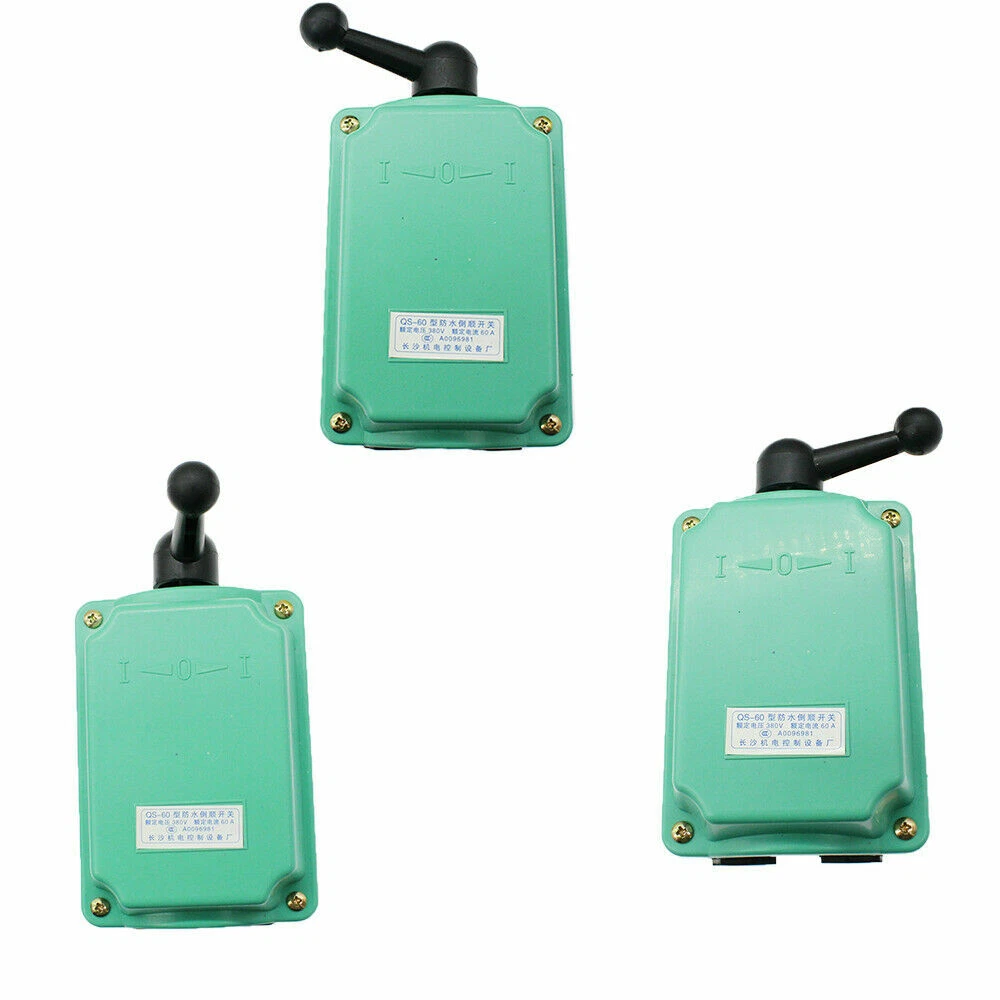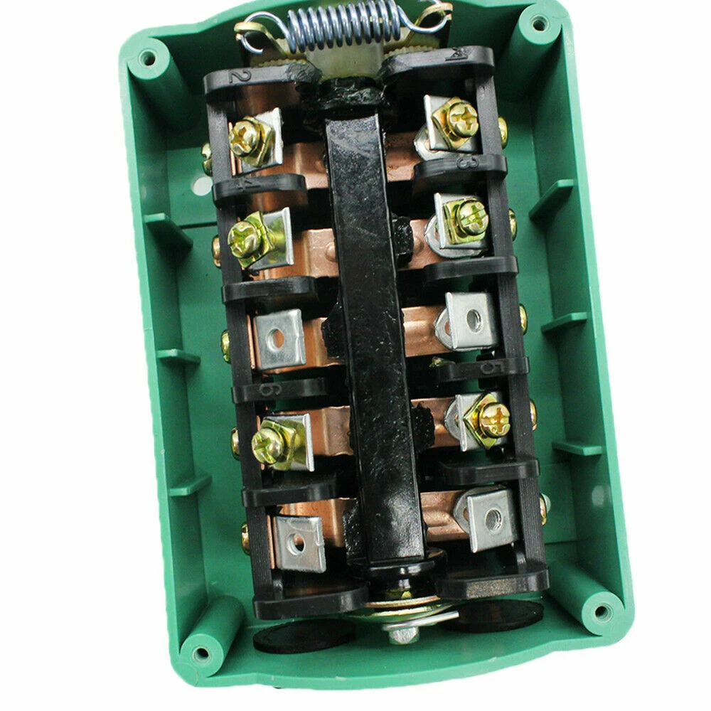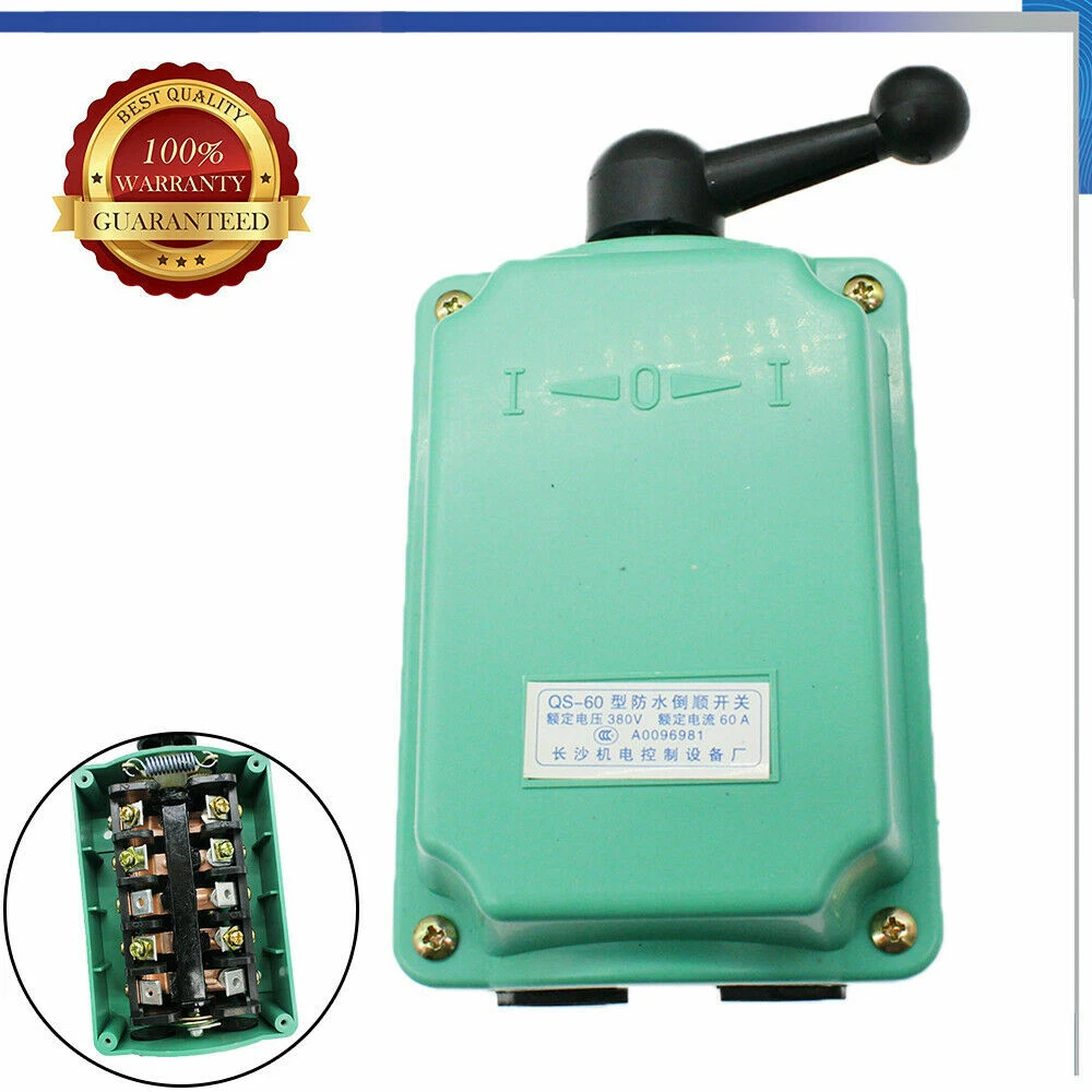 Specifications: --100% Brand New And High Quality --3 Positions: Forward, Stop, Reverse --Contact Rating: 0 to 380V, 60A (3HP 120V or 6HP 240V Motors) --6 Terminals: 2 Straight, 4 Cross --Switch Action: Maintained (Stay Switched) --Casing: Impact and Corrosion Resistant Plastic --Wash-down Safe and Rain Proof --Dimensions: 6-1/4" x 3 - 3/4" x 2-3/4" --Color: Green Specifications: --100% Brand New And High Quality -- 3 Positions: Forward, Stop, Reverse --Contact Rating: 0 to 380V, 60A (3HP 120V or 6HP 240V Motors) -- 6 Terminals: 2 Straight, 4 Cross --Switch Action: Maintained (Stay Switched) --Casing: Impact and Corrosion Resistant Plastic --Wash-down Safe and Rain Proof --Dimensions: 6-1/4" x 3 - 3/4" x 2-3/4" --Color: Green Package Content: 1 x 60A Drum Switch On Feb 13, 2024 at 01:18:24 PST, seller added the following information: