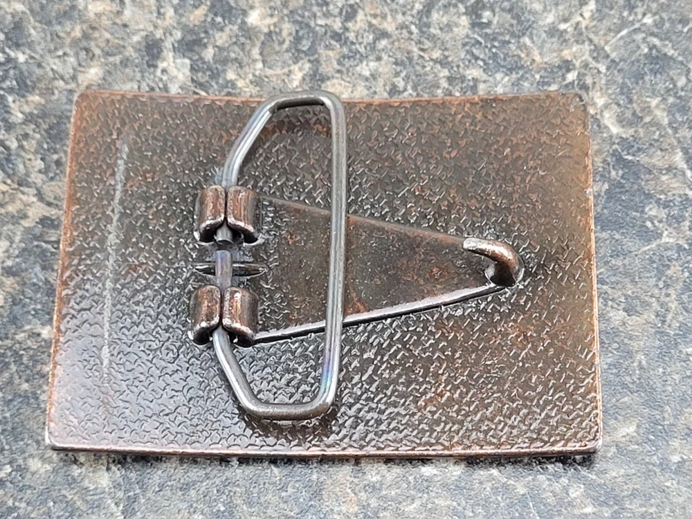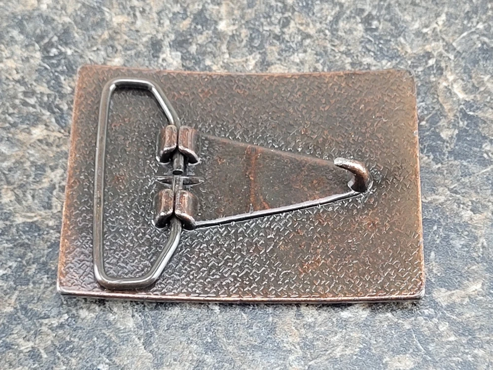 This belt buckle is approximately 7.5 cm x 5.5 cm.