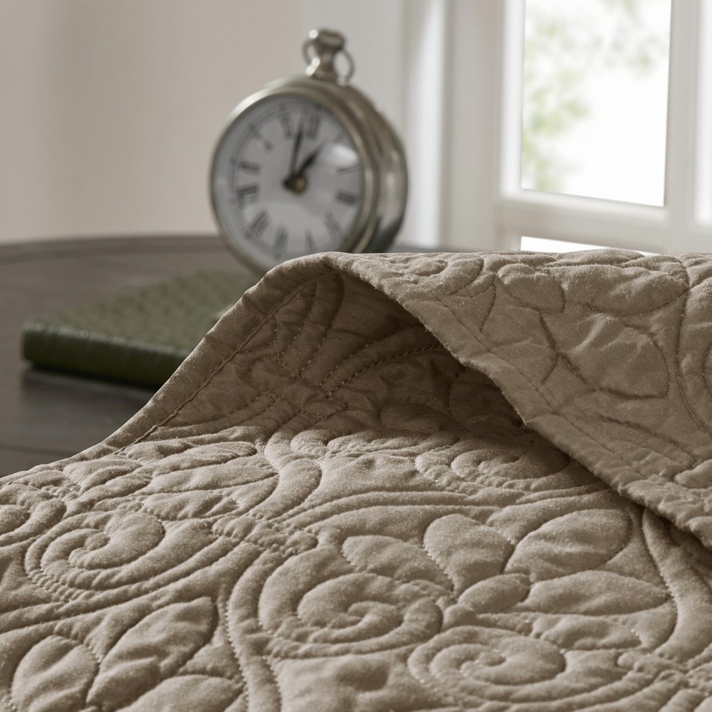 Quebec Reversible All-Season Quilt Set with Damask Design & Double Stitching
