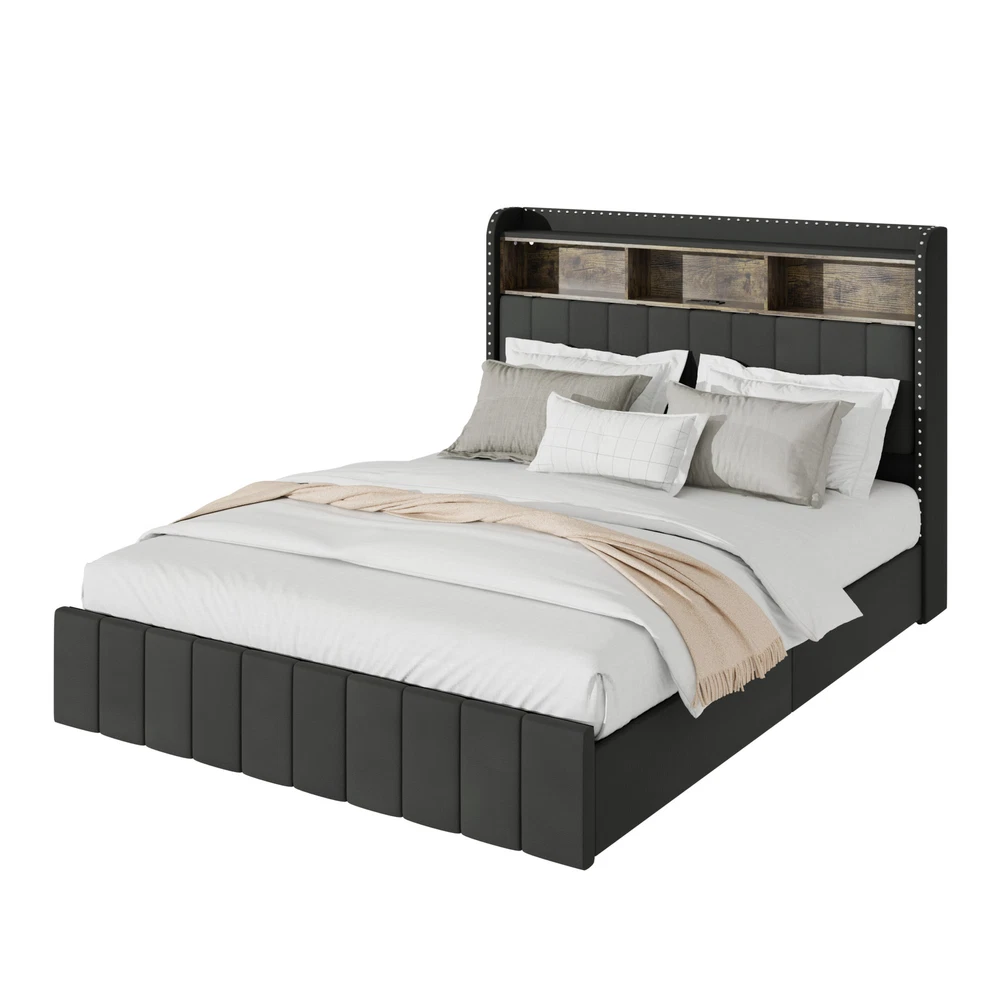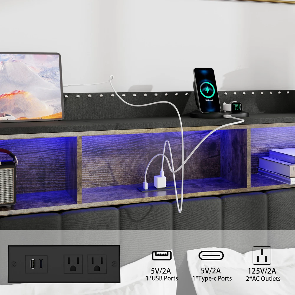Brand Unbranded Item Length 65.5 Item Width 18.70 Item Height 10.60 Color Antique Gray Frame Material Fabric Metal Type BED FRAME Compatible Mattress Size As described Diamond-ring-1 Simple life Queen Bed Frame with Storage Headboard, Wooden Bed Frame with 47.2" Bookcase Headboard, 4 Storage Drawers & Charging Station, No Box Spring Needed/Noise Free/All-Metal Support, Vintage Gray 【Large-Capacity Storage Bookcase Headboard】 Storage shelves on the headboard not only provides you with large storage space, but also makes it convenient for you to place or retrieve commonly used items such as books, phones, alarms, etc. It is a very practical design. 【Practical Built-in Charging Station】The storage headboard is equipped with a built-in charging station, including 2 AC Outlets, a USB port and a type-C port, allowing you to charge various electronic devices within easy reach. 【4 Lockable Storage Drawers】Four under bed storage drawers serve as hidden storage spaces, providing you with more storage space and making your bedroom look clean and tidy. The drawer can be fixed to the bedside with a latch to prevent it from slipping out. Multi-Function RGB LED Light: Enhance your home experience with the bed frame's RGB LED light strip. Easily personalize the LED color, brightness, modes, and timing functions with mobile app. Clear instructions walk you through the straightforward setup process, allowing you to craft a dynamic and tailored ambiance to suit various styles and occasions Sturdy Structure & No Box Spring Required: The queen size platform bed frame features a combination of an ultra-durable metal frame and wooden slats, ensuring even support and superior weight distribution. With a weight capacity of 1000 lbs, it offers a strong sense of security and promotes restful sleep without the need for a box spring Item Specifics Brand Unbranded Item Length 65.5 Item Width 18.70 Item Height 10.60 Color Antique Gray Frame Material Fabric Metal Type BED FRAME Compatible Mattress Size As described Payment Returns Diamond-ring-1 Simple life DESCRIPTION PAYMENT SHIPPING RETURN POLICY CONTACT US Shop Category Store Home Other Hot Item Delivery New List Item Help & Info Payment Policy Shipping Policy Return Policy FAQ About Us Queen Bed Frame with Storage Headboard, Wooden Bed Frame with 47.2" Bookcase Headboard, 4 Storage Drawers & Charging Station, No Box Spring Needed/Noise Free/All-Metal Support, Vintage Gray 【Large-Capacity Storage Bookcase Headboard】 Storage shelves on the headboard not only provides you with large storage space, but also makes it convenient for you to place or retrieve commonly used items such as books, phones, alarms, etc. It is a very practical design. 【Practical Built-in Charging Station】The storage headboard is equipped with a built-in charging station, including 2 AC Outlets, a USB port and a type-C port, allowing you to charge various electronic devices within easy reach. 【4 Lockable Storage Drawers】Four under bed storage drawers serve as hidden storage spaces, providing you with more storage space and making your bedroom look clean and tidy. The drawer can be fixed to the bedside with a latch to prevent it from slipping out. Multi-Function RGB LED Light: Enhance your home experience with the bed frame's RGB LED light strip. Easily personalize the LED color, brightness, modes, and timing functions with mobile app. Clear instructions walk you through the straightforward setup process, allowing you to craft a dynamic and tailored ambiance to suit various styles and occasions Sturdy Structure & No Box Spring Required: The queen size platform bed frame features a combination of an ultra-durable metal frame and wooden slats, ensuring even support and superior weight distribution. With a weight capacity of 1000 lbs, it offers a strong sense of security and promotes restful sleep without the need for a box spring Item Specifics Brand : Unbranded Item Length : 65.5 Item Width : 18.70 Item Height : 10.60 Color : Antique Gray Frame Material : Fabric Metal Type : BED FRAME Compatible Mattress Size : As described Payment Returns All rights reserved.