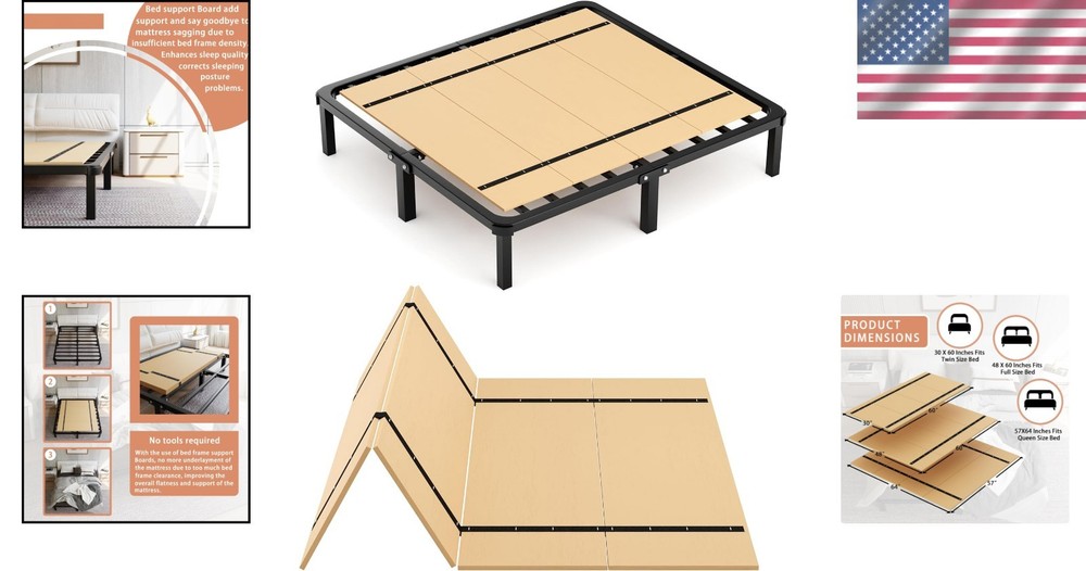 Queen Foldable Bunkie Board - Extra Wood Support for Better Sleep 80"x57" ‹ › ‹ › ‹ › ‹ › ‹ › ‹ › ‹ › ‹ › ‹ › Queen Foldable Bunkie Board Experience Better Sleep and Comfort! Dimensions: Overall size: 76" L x 58" W Folded size: 58" x 16" Thickness: 1/5" when flat; 4/5" when folded Weight: Approx. 11 pounds Features: Adds extra support under the mattress to prevent sagging. Low profile design provides firm mattress support without the bulk of a traditional box spring. Foldable for convenient storage and portability. Ideal for various bed types: kids' beds, bunk beds, sleeper sofas, pull-out beds, and slatted beds. Engineered for comfort: designed to enhance the life of old and uncomfortable mattresses. Benefits: Provides enhanced stability and support for a restful night’s sleep. Lightweight and easily portable for weekend getaways or travel. Preserves the lifespan of your mattress, ensuring you wake up refreshed. Creates a firmer sleeping surface, ideal for those who prefer a supportive feel. Why Choose Our Queen Foldable Bunkie Board? Are you struggling with an uncomfortable mattress that sags in the middle? Say goodbye to restless nights and hello to rejuvenating sleep with our Queen Foldable Bunkie Board. This innovative under-mattress solution is specifically designed to provide the support you need, without the added height or bulk of traditional box springs. Its portable, foldable design makes it perfect for any living situation, from kids’ beds to sleeper sofas. Invest in your sleep quality today. Elevate your mattress and experience the comfort you deserve with our Queen Foldable Bunkie Board! Order now and take the first step towards the restful nights you’ve been dreaming of. Shipping Free & Fast Shipping - We offer free shipping to most of the USA with a normal delivery time of 3-7 days. However, due to the current situation, additional delivery time (up to 3 weeks) may be required for some items. Alternative Carriers - We may use alternative carriers (e.g. USPS, FedEx, UPS, etc.) to ensure your package arrives safely and on time. Due to the use of multiple carriers, we are unable to provide a tracking number automatically. Handling Time - Orders are processed and shipped within 1-2 business days of receiving cleared payment. Shipping Restrictions - Shipping to Alaska, Hawaii, Puerto Rico, Guam, and other US territories may incur shipping charges or delivery restrictions. Please contact us before ordering, or your order can be refunded/cancelled. State Restrictions - There may be restrictions based on your state of purchase. For example, certain items may not be shipped to California due to state regulations. Contact for Tracking Updates - If you require tracking updates or have any concerns about the delivery of your order, please feel free to contact us, and we will be happy to assist you. Return 30-Day Hassle-Free Returns - We want you to be completely satisfied with your purchase. If you are not, you can return the item within 30 days of receiving it for a full refund or exchange. Easy Return Process - To start a return, simply contact us and we will provide you with a prepaid return shipping label and detailed instructions. Restocking Fee - There are no restocking fees for returns. However, the buyer is responsible for return shipping costs if the return is not due to a seller's error. Refund Processing Time - Refunds will be processed within 5 business days of receiving the returned item in its condition. Payment We accept all major credit cards, PayPal, and Apple Pay for your convenience. Your payment information is secure and encrypted to ensure a safe and seamless transaction. Please complete your payment within 3 days of purchase to avoid any delays in shipping. Feedback Your feedback is extremely important to us. We strive to provide the best products and customer service possible. If you are satisfied with your purchase, please take a moment to leave us a positive review. If you have any concerns or issues with your order, please contact us before leaving negative feedback. We are committed to resolving any problems and ensuring your satisfaction. Contact Us If you have any questions or concerns, please feel free to out to our customer support team. You can contact us through the eBay messaging system. We are available Monday to Friday, 9:00 am to 5:00 pm EST, and we will do our best to respond to your inquiry within 24 hours. Buy it now and enjoy a pleasant shopping experience! Unit Quantity: 1 Compatible Mattress Size: Queen 80"x57" Frame Material: Wood Features: Foldable,Under Mattress Support Care Instructions: Clean with Dampen Cloth Department: Adults Type: Bunkie Board Color: Log Item Height: 1 Inches Shape: Rectangular Room: Bedroom Item Weight: 11 pounds