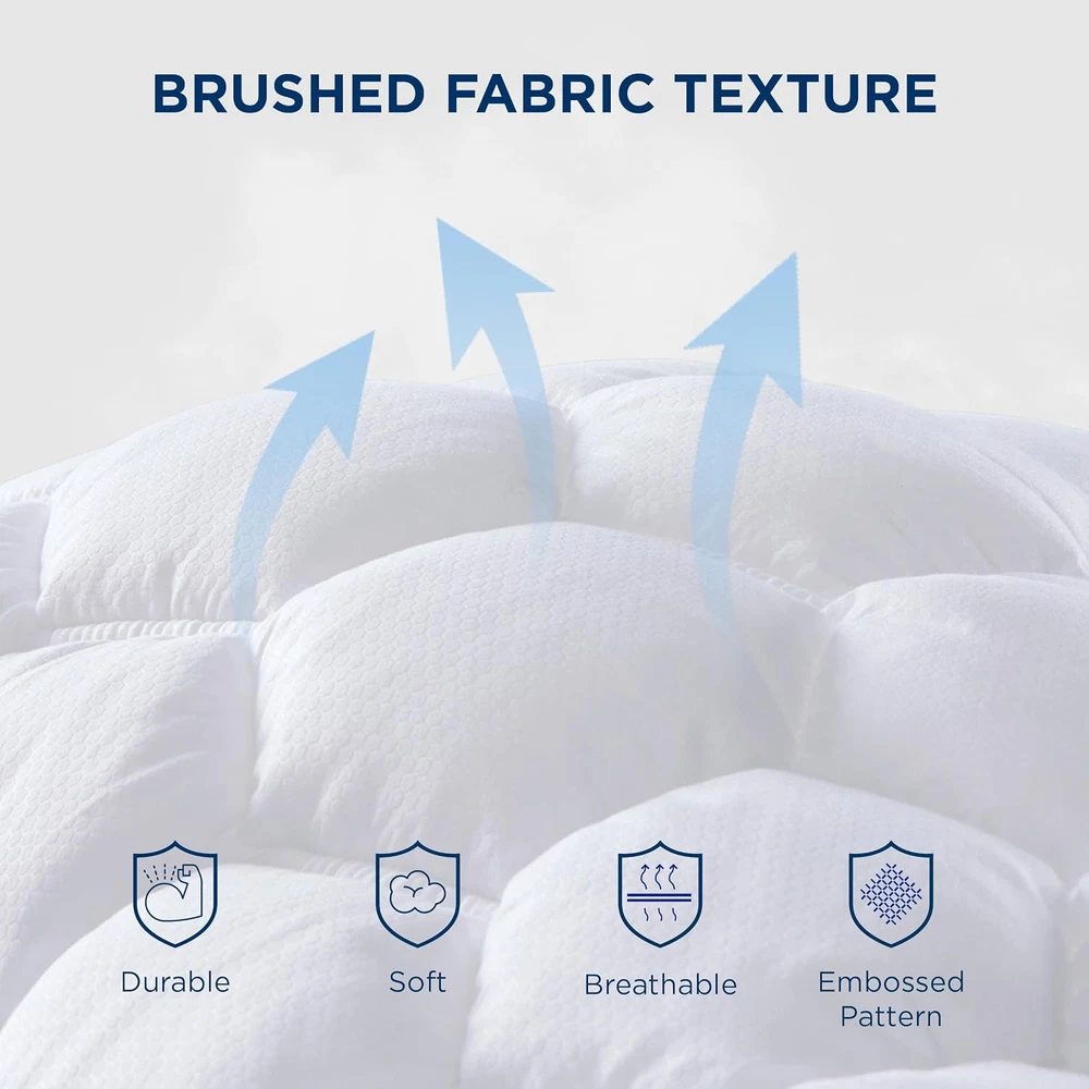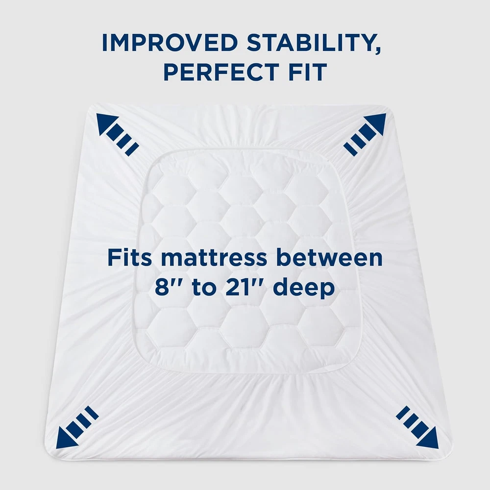 Store New Arrivals Add to Favorite View Feedback Contact Queen Mattress Pad - Quilted Fitted Mattress Topper, Noiseless Washable Mattress Protector with 8-21" Deep Pocket, Breathable Mattress Cover Padded,White, 60X80 Inches Description Item model number Mattress Pad Overfilled Quiet Shade Number of Items 1 Batteries required No Product Dimensions 80 x 60 x 16 inches Material Polyester Model Name Soft Mattress Protector For College Dorm Is Discontinued By Manufacturer No Closure Type Pull On Age Range (Description) All Ages Included Components 1 x Queen Size Mattress Pad (60x80 Inches) Water Resistance Level Not Water Resistant Fabric Type 100% Polyester Item Weight 3.7 pounds Special Feature No Slip, Quilted, Deep Pocket, Noiseless, Washable Color White Thread Count 300 Global Trade Identification Number 00841745101382 Size Queen Product Care Instructions Machine Wash, Do Not Bleach Number of pieces 1 100% Polyester Ergonomic Design: This Bedsure queen size mattress pad (60x80 Inches) features an ergonomic three-zone design. The top and bottom zones feature a softer wavy design for improved relaxation. The honeycomb-shaped middle quilting provides evenly distributed support that disperses the body’s pressure. Designed to upgrade your stiff mattress to a restorative sleeping space Optimal Comfort: Featuring Bedsure's signature thoroughly tested polyester microfiber filling blend, this queen mattress topper offers extra softness and optimal support for the ideal balance of comfort and firmness Soft to The Touch: The premium polyester microfiber cover is finely brushed to achieve a satisfyingly soft hand-feel without crinkly noise, providing you with a deep and restful night’s sleep Deep Pocket: Bedsure queen mattress protector can be easily stretched up to 21" deep, and the all-around elastic edging effortlessly secures the queen size mattress cover in place without moving or shifting Enhanced Durability & Easy Care: Thanks to the premium polyester microfiber cover and neat stitching, the queen mattress cover offers improved durability to withstand wear and tear. Machine wash separately in cold water on a gentle cycle and tumble dry low Product Description The video showcases the product in use. The video guides you through product setup. The video compares multiple products. The video shows the product being unpacked. EASY TO MAINTAIN Quilted box design prevents filling from shifting SECURELY FASTENED Wider elastic bands ensure a secure fit on your mattress 360°BREATHABILITY All-around mesh fabric. More Choices From Bedsure Add to Cart Add to Cart Add to Cart Add to Cart Add to Cart Add to Cart Add to Cart Customer Reviews 4.7 out of 5 stars 649 4.6 out of 5 stars 615 4.3 out of 5 stars 712 4.4 out of 5 stars 9,308 4.3 out of 5 stars 14,238 4.5 out of 5 stars 87,958 4.5 out of 5 stars 25,506 Price $32.99 $ 32 . 99 $32.99 $ 32 . 99 $69.99 $ 69 . 99 $29.99 $ 29 . 99 $24.99 $ 24 . 99 $16.99 $ 16 . 99 $38.99 $ 38 . 99 Features 408GSM,Waterproof,Deep Pocket Waterproof, Comfortable, Soft Quilted, Pillowtop, Adjustable Soft, Quilted, Adjustable Soft, Firm, Fluffy, Breathable Ultra Soft, Sturdiness Lightweight, Comfortable Material 100% Polyester 100% Polyester 100% Polyester Cotton Top, Polyester Fill 100% Polyester 100% Polyester 100% Polyester Size Available Twin/Twin XL/Full/Queen/King Twin/Full/Queen/King/Cal King Twin/Twin XL/Full/Queen/King Twin/Twin XL/Full/Queen/King Queen/King/Standard Twin/Twin XL/Full/Queen/King Twin/Full/Queen/King/Cal King Product Care Instructions Machine Wash, Do Not Bleach Machine Wash, Do Not Bleach Machine Wash, Do Not Bleach Machine Wash, Do Not Bleach Machine Wash, Do Not Bleach Machine Wash, Do Not Bleach Machine Wash, Do Not Bleach Pieces 1 1 1 1 2 3-4 5-7 Machine Washable ✔ ✔ ✔ ✔ ✔ ✔ ✔ Available Color 2 Colors 1 Color 2 Colors 2 Colors 1 Color 22 Colors 16 Colors ABOUT US We offer the best prices around on high quality products. Our E-store includes media such as books, movies, music and games while offering electronics, toys, sporting apparel, clothing, tools, general home, garden items and more. SHIPPING We are always working hard to ensure your package arrives as soon as possible. Please understand that some factors like weather, high postal traffic, and the performance of shipping companies are outside of our control. We offer free shipping to the lower 48 states and ship within 2 business days of payment, usually sooner. We do not accept P.O. Boxes. Please provide a physical address. RETURNS We offer a 30-Day Return Policy on items which you are not completely satisfied with. You have the option for a full-refund or an exchange of the item. No returns are available on items shipped outside of the USA. PAYMENT We accept PayPal. CONTACT US This page content is yet to come Please ad us to your favorite seller and visit again later Thank You CUSTOMER SATISFACTION We try our very best to make sure every customer is completely satisfied. If there's a problem, message us! We're happy to help.