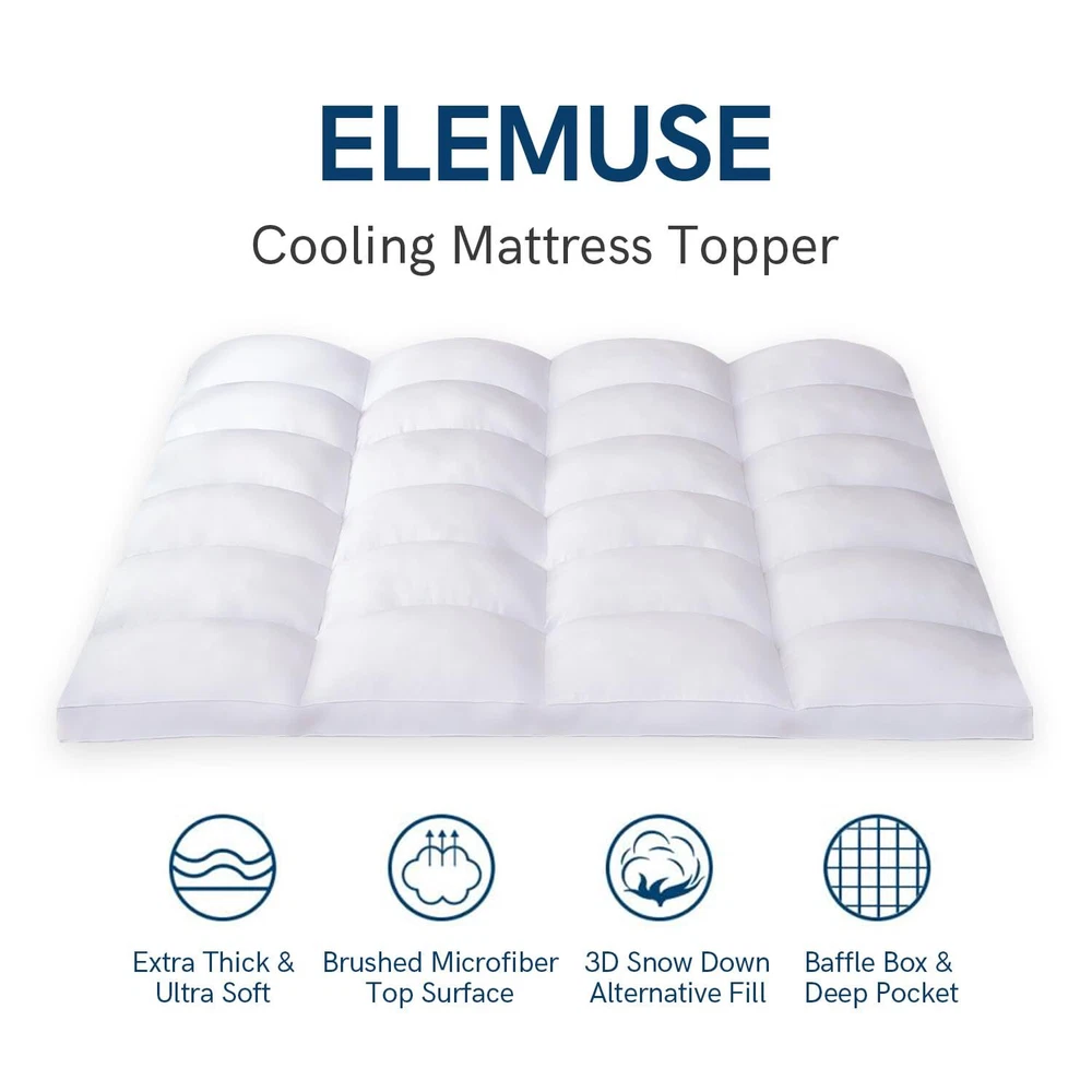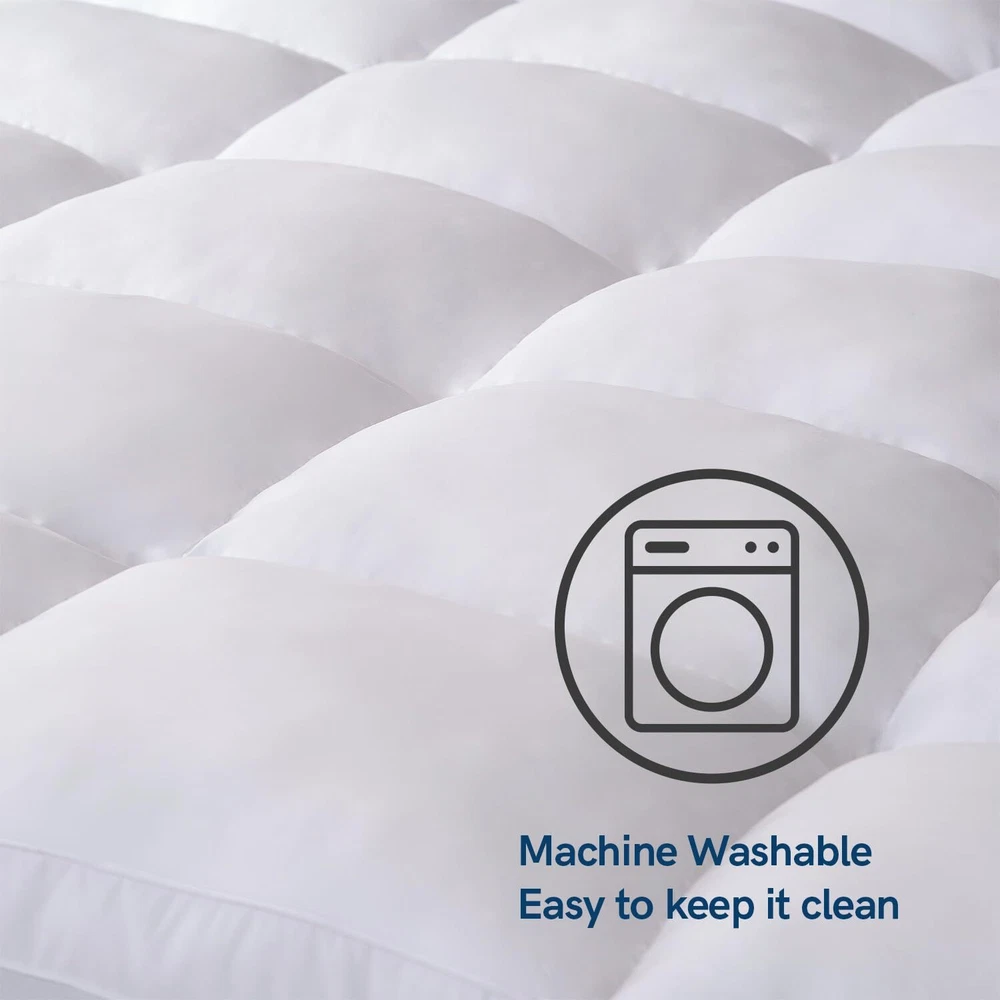 【PREMIUM MATERIAL&SOFT FILLING】Tightly woven and thin brushed microfiber fabric is exceptionally soft, breathable and comfortable. It's also durable, no risk being ripped even with frequently washing. Compared with traditional mattress topper, it's double filled with 3D snow down alternative filling, enough soft, plush and warm. Materials are clean, helps diminish the negative outcomes of a person who has sensetive skin. 【ULTRA THICK&MAXI COMFORT】With overfilled down alternative filling, mattress topper is extra thick and supportive, offering pressure-relief properties that provide greater support for your hips, shoulders, back, and knees. Down alternative filling retains less body heat than memory foam, causing less uncomfortably warm or hot during the night. This mattress pad can improve your quality of sleep and leave you feeling well rested when morning comes. 【DEEP POCKET&BOX SEWING PATTERN】8"-21" elastic deep pocket will wrap your mattress perfectly so the pillow top will stay in place and you can toss and turn freely during the sleepy nights. Unique box sewing pattern leaves box pockets to hold the filling and keep it evenly distributed. The morden stylish designed bed skirt and sewing pattern add more appealing visual aesthetic to your bedroom. 【MACHINE WASHABLE&EASY CARE】Unlike expensive mattresses, this thick mattress pad can be washed in a large machine with cold water, mild detergent and gentle cycle. It remains fluffy after drying on low heat, saving you time and energy. Available Sizes: Twin 39"x75"/Twin XL 39"x80"/Full 54"x75"/Full XL 54"x80"/Short Queen 60"x75"/Queen 60"x80"/Super Queen 66"*80"/RV King 72"*80"/King 78"x80"/Cal King 72"x84" 【100% CUSTOMER SATISFACTION】aims to provide satisfying pre-sales and after-sales service. service team will always offer immediate answers to customers and fix relevant issues. Here what you'll get is not only superious products but excellent service. Purchase one as gift for yourself or your beloved. All of you are deserve the super comfortable mattress topper.