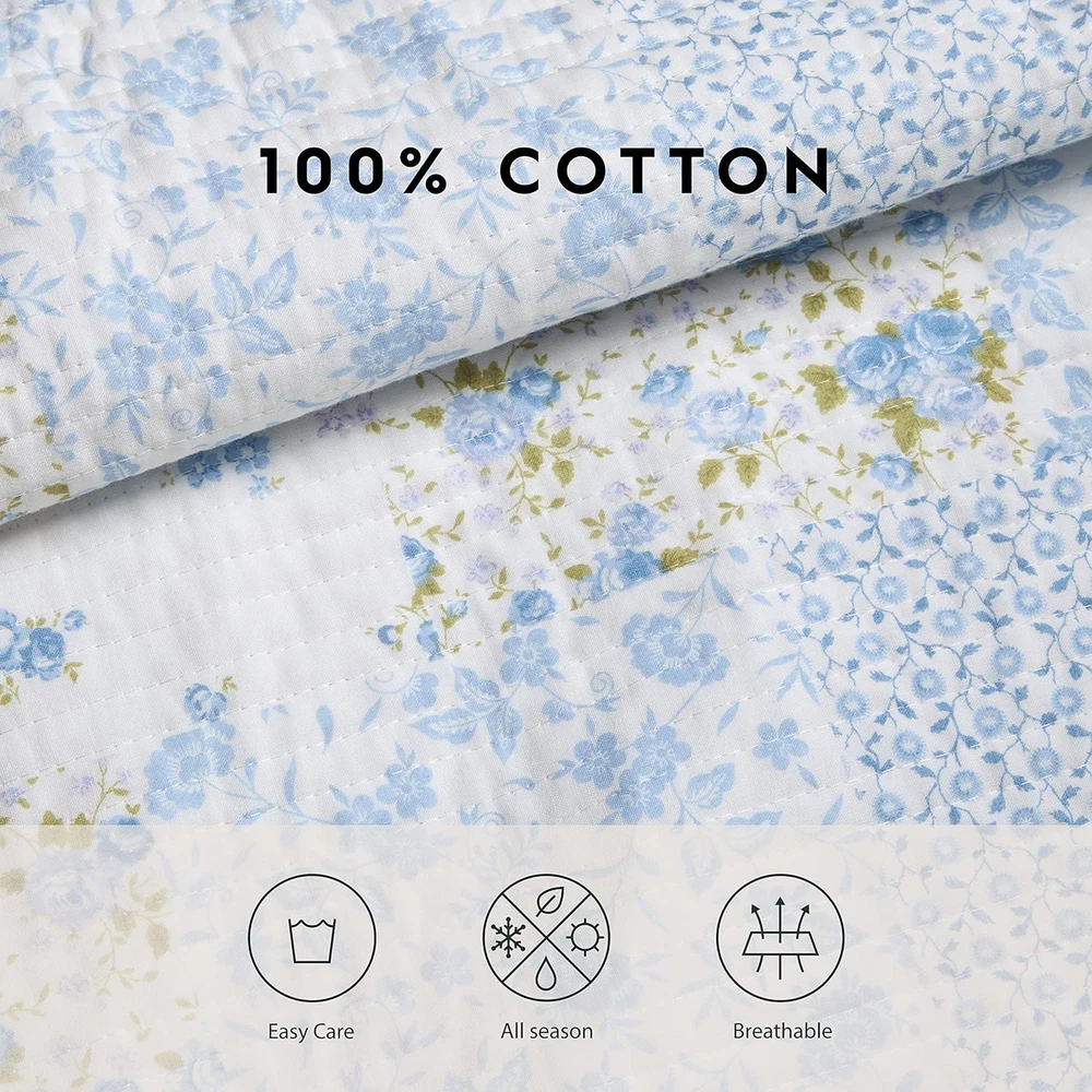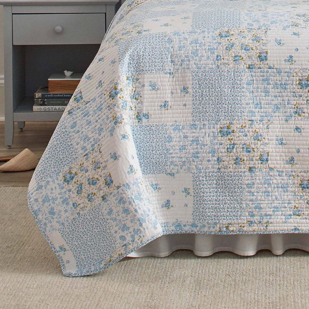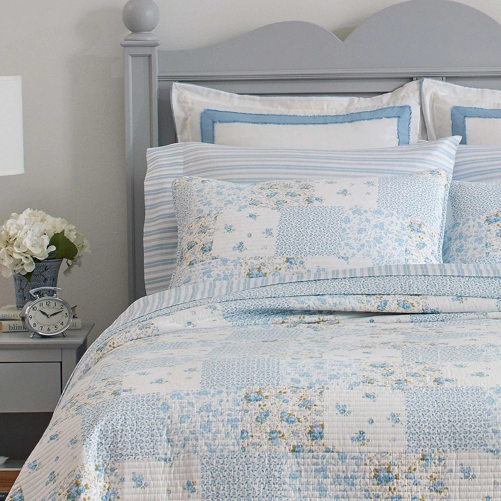 Menu Other Items Feedbacks About Us Contact Us Add To Favorites - Queen Quilt Set, Cotton Reversible Bedding with Matching Shams, Bedroom Decor Ideal for All Seasons (Kenna Blue, Queen) 100% Cotton Imported QUALITY FABRIC: Made from 100% cotton, a natural fiber that is breathable SOFT & DURABLE: Lightweight for casual coastal style, perfect for layering; prewashed for added softness COTTON RICH FILL: Filled with a blend of 80% Cotton 20% Polyester for warmth and durability PIECES INCLUDED: Queen Quilt: 90"W X 90"L, Standard Sham: 21"L X 27"W. Will fit Full size as well. SHAMS: Included shams have a back envelope closure Product description The video showcases the product in use. The video guides you through product setup. The video compares multiple products. The video shows the product being unpacked. Laura Ashley Quilts Merchant Video Layer in Comfort and Style with Thoughtfully Curated Bedding Feel Soft, smooth, and inviting, with a gentle handfeel Feel Relaxed and breathable, designed to move naturally and layer beautifully Feel Crisp, smooth, and cool to the touch with a light, breathable feel. Design Graceful and understated, bringing heritage-inspired style to any space Design Features a stunning light blue pinstripe ruffled design Design Clean, classic percale styling for a fresh, polished bed look. Fabrication Made from a high-quality blend of 55% Ramie and 45% Cotton Fabrication Crafted from pure cotton for a soft, comfortable feel with a luxurious touch. Fabrication Made from pure cotton for breathable comfort with a fresh, crisp finish. Care Machine wash cold on gentle cycle with mild detergent Care Machine wash cold, tumble dry on low for lasting softness Care Machine wash cold with like colors on a gentle cycle Item Specification Item model number 225718 Style Traditional Assembly required No Pattern Floral Theme Floral Import Imported Number of Pieces 1 Batteries required No Product Dimensions 90 x 90 x 1 inches Material Cotton Seasons All Included Components Pillow Sham, Quilt Item dimensions L x W x H 90 x 90 x 1 inches Fabric Type 100% Cotton Item Weight 5 pounds Pillowcase Length 21 Inches Color Kenna Blue Global Trade Identification Number 00883893527409 Recommended Uses For Product Home Refill cotton, cotton cotton polyester fiber, fiber, polyester Product Care Instructions Machine Washable for Easy Care Size Queen FREE SHIPPING We are always working hard to ensure your package arrives as soon as possible. Please understand that some factors like weather, high postal traffic, and the performance of shipping companies are outside of our control. We offer free shipping to the lower 48 states. We do not accept P.O. Boxes. Please provide a physical address. If you have a problem or question regarding your transaction please contact us immediately. We will work with you to resolve any problem you may have. Thank you