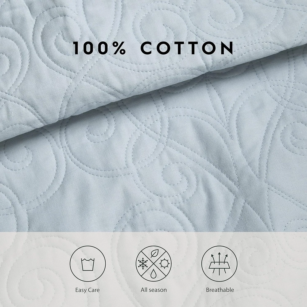 Menu Other Items Feedbacks About Us Contact Us Add To Favorites - Queen Quilt Set, Reversible Cotton Bedding with Matching Shams, Medium-Weight for Year round Use, Pre-Washed for Added Softness (Felicity Blue) 100% Cotton Imported LAURA ASHLEY HOME: Elegantly designed bedding collections inspired by classic British heritage. Our products seamlessly blend beauty and comfort to bring a touch of sophistication to your home every day. QUALITY: Crafted from premium 100% cotton fibers for breathable, durable, and ultra-soft fabric that ensures lasting comfort and quality. EASY CARE: Machine wash cold with gentle detergent, tumble dry low or air dry to maintain softness and prevent shrinkage. SIZE: Queen Quilt- 90"W x 90"L, Standard Shams- 21"L x 27"W FEATURES: Matching shams feature a stylish back envelope closure for a clean, secure fit and easy pillow insertion—adds a polished, cohesive look to your bedding set. Product description The video showcases the product in use. The video guides you through product setup. The video compares multiple products. The video shows the product being unpacked. Laura Ashley Quilts Merchant Video Layer in Comfort and Style with Thoughtfully Curated Bedding Feel Soft, smooth, and inviting, with a gentle handfeel Feel Relaxed and breathable, designed to move naturally and layer beautifully Feel Crisp, smooth, and cool to the touch with a light, breathable feel. Design Graceful and understated, bringing heritage-inspired style to any space Design Features a stunning light blue pinstripe ruffled design Design Clean, classic percale styling for a fresh, polished bed look. Fabrication Made from a high-quality blend of 55% Ramie and 45% Cotton Fabrication Crafted from pure cotton for a soft, comfortable feel with a luxurious touch. Fabrication Made from pure cotton for breathable comfort with a fresh, crisp finish. Care Machine wash cold on gentle cycle with mild detergent Care Machine wash cold, tumble dry on low for lasting softness Care Machine wash cold with like colors on a gentle cycle Item Specification Item model number 210427 Style Farmhouse Assembly required No Pattern Solid Theme Floral Department unisex-adult Import Imported Number of Pieces 3 Batteries required No Product Dimensions 90 x 90 x 0.25 inches Material Cotton Seasons All Is Discontinued By Manufacturer No Included Components One quilt and two standard shams Item dimensions L x W x H 90 x 90 x 0.25 inches Fabric Type 100% Cotton Item Weight 1 pounds Color Felicity Blue Global Trade Identification Number 00883893382015 Refill Cotton Product Care Instructions Machine Wash Size Queen FREE SHIPPING We are always working hard to ensure your package arrives as soon as possible. Please understand that some factors like weather, high postal traffic, and the performance of shipping companies are outside of our control. We offer free shipping to the lower 48 states. We do not accept P.O. Boxes. Please provide a physical address. If you have a problem or question regarding your transaction please contact us immediately. We will work with you to resolve any problem you may have. Thank you