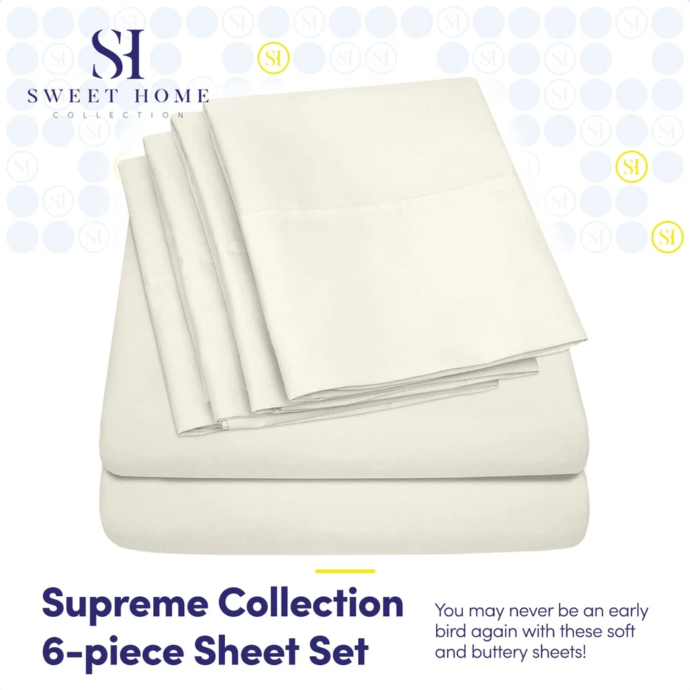 Transform your bedroom into a sanctuary of comfort and style with our luxurious 6-piece bed sheet set, meticulously crafted to provide the ultimate sleeping experience. Made from premium quality microfiber fabric, these sheets boast an irresistibly soft texture that will envelop you in pure bliss as you drift off to sleep. Say goodbye to rough, scratchy bedding and hello to the indulgent embrace of our sumptuous sheets, designed to pamper you with every touch. Whether you're curling up with a good book or drifting off into dreamland, our bed sheet set promises unparalleled comfort and relaxation, night after night. Experience the difference of a secure and snug fit with our innovative built-in sheet straps, ensuring that your sheets stay in place throughout the night. No more waking up to find your sheets bunched up at the foot of the bed or slipping off the corners. Our sheet straps are designed to provide maximum grip and stability, so you can enjoy uninterrupted sleep without the hassle of constantly readjusting your bedding. With our bed sheet set, you can rest easy knowing that your sheets will stay securely in place, even if you toss and turn during the night. Say goodbye to restless nights and hello to a peaceful and restorative sleep experience. Add a touch of personality to your bedroom with our wide selection of over 40 captivating colors and prints. Whether you prefer classic neutrals, bold hues, or eye-catching patterns, we have the perfect option to complement any decor style or personal taste. Mix and match different colors and prints to create your own unique bedding ensemble that reflects your individual style and personality. Elevate the aesthetic appeal of your bedroom and make a statement with our stylish and versatile bed sheet set. With so many options to choose from, the possibilities are endless. Each set includes a flat sheet, fitted sheet, and four pillowcases (except for twin and twin XL sizes, which come with pillowcases), providing everything you need for a complete bedding ensemble. Our bed sheet set takes the guesswork out of styling your bed, offering a convenient and coordinated solution that is both functional and fashionable. Enjoy the convenience of a fully coordinated bedding look that exudes sophistication and elegance. Treat yourself to the luxury of premium quality bedding that offers both style and comfort in convenient package. Experience the ultimate in comfort and style with our luxurious 6-piece bed sheet set. ELASTIC CORNERS BUILT IN - What separates our bed sheets from the rest are the special elastic sheet straps built in. These elastic corners keep your fitted sheet secure to the bed and come on all of our sheets. SLEEP IN LUXURY – No more sleepless nights on uncomfortably itchy sheets! Sleep soundly on the softest 1500 Supreme Deluxe Collection sheets. Be warned, though: You may never be an early bird again! SUPERB SHEET SET – Each luxurious set has 1 fitted, 1 flat sheet, and 4 pillowcases (NOTE: Twin & Twin XL sizes include 2 pillowcases). Deep pockets, thick elastic, and BUILT IN SHEET STRAPS make your new soft sheets stay in place! STAY CLEANER, LONGER – Who has time to wash their sheets every few nights? When it’s time for a wash, machine wash cold, and tumble dry low. PERFECT FIT FOR ANY BED – Sleep soundly for years to come! Your deep pocket sheets are fade, shrink, and resistant. We’ve got you (and your bed) covered.
