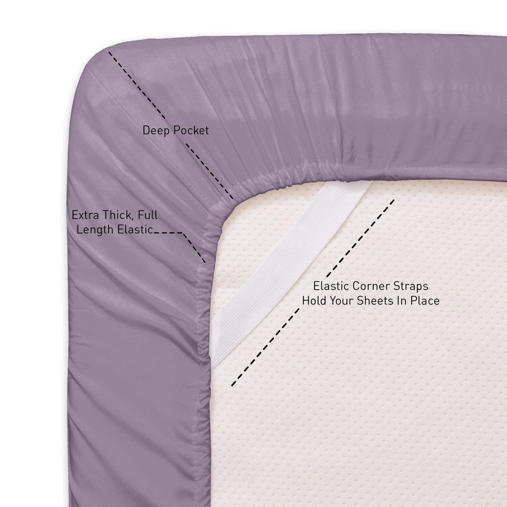 Indulge in the ultimate luxury and comfort with our luxurious fine double brushed microfiber 6-piece sheet set. Crafted from premium quality microfiber, this sheet set offers unparalleled softness and comfort for a truly luxurious night's sleep. The double brushed microfiber fabric is incredibly soft to the touch, providing a gentle caress against your skin for a cozy and comfortable sleep experience. Designed for optimal comfort and durability, our sheet set features a deep pocket design that accommodates mattresses up to 16 inches deep, ensuring a secure and snug fit. The elasticized edges keep the fitted sheet in place throughout the night, preventing it from slipping or bunching up for a hassle-free sleep experience. In addition to their luxurious comfort, our sheet set is also highly breathable, making it ideal for sensitive skin. The breathable fabric allows for optimal airflow, keeping you cool and comfortable throughout the night, and promoting a healthier sleep environment. Say goodbye to wrinkled and faded sheets with our durable microfiber sheet set. The double brushed microfiber fabric is naturally wrinkle-resistant, ensuring a smooth and pristine appearance wash after wash. Additionally, the fade-resistant color ensures that your sheets retain their vibrant hue, adding a touch of elegance to your bedding ensemble for years to come. Cleaning and maintaining our sheet set is effortless. Simply machine wash in cold water and tumble dry on low heat for quick and convenient cleaning. The durable microfiber fabric is shrink-resistant and colorfast, ensuring that your sheets retain their softness, color, and shape wash after wash, making them a long-lasting and investment in luxurious comfort. Treat yourself to the ultimate luxury and comfort with our luxurious fine double brushed microfiber 6-piece sheet set and transform your bedroom into a serene and inviting retreat ELASTIC CORNERS BUILT IN - What separates our bed sheets from the rest are the special elastic sheet straps built in. These elastic corners keep your fitted sheet secure to the bed and come on all of our sheets. SLEEP IN LUXURY – No more sleepless nights on uncomfortably itchy sheets! Sleep soundly on the softest 1500 Supreme Deluxe Collection sheets. Be warned, though: You may never be an early bird again! SUPERB SHEET SET – Each luxurious set has 1 fitted, 1 flat sheet, and 4 pillowcases (NOTE: Twin & Twin XL sizes include 2 pillowcases). Deep pockets, thick elastic, and BUILT IN SHEET STRAPS make your new soft sheets stay in place! STAY CLEANER, LONGER – Who has time to wash their sheets every few nights? When it’s time for a wash, machine wash cold, and tumble dry low. PERFECT FIT FOR ANY BED – Sleep soundly for years to come! Your deep pocket sheets are fade, shrink, and wrinkle resistant. We’ve got you (and your bed) covered.